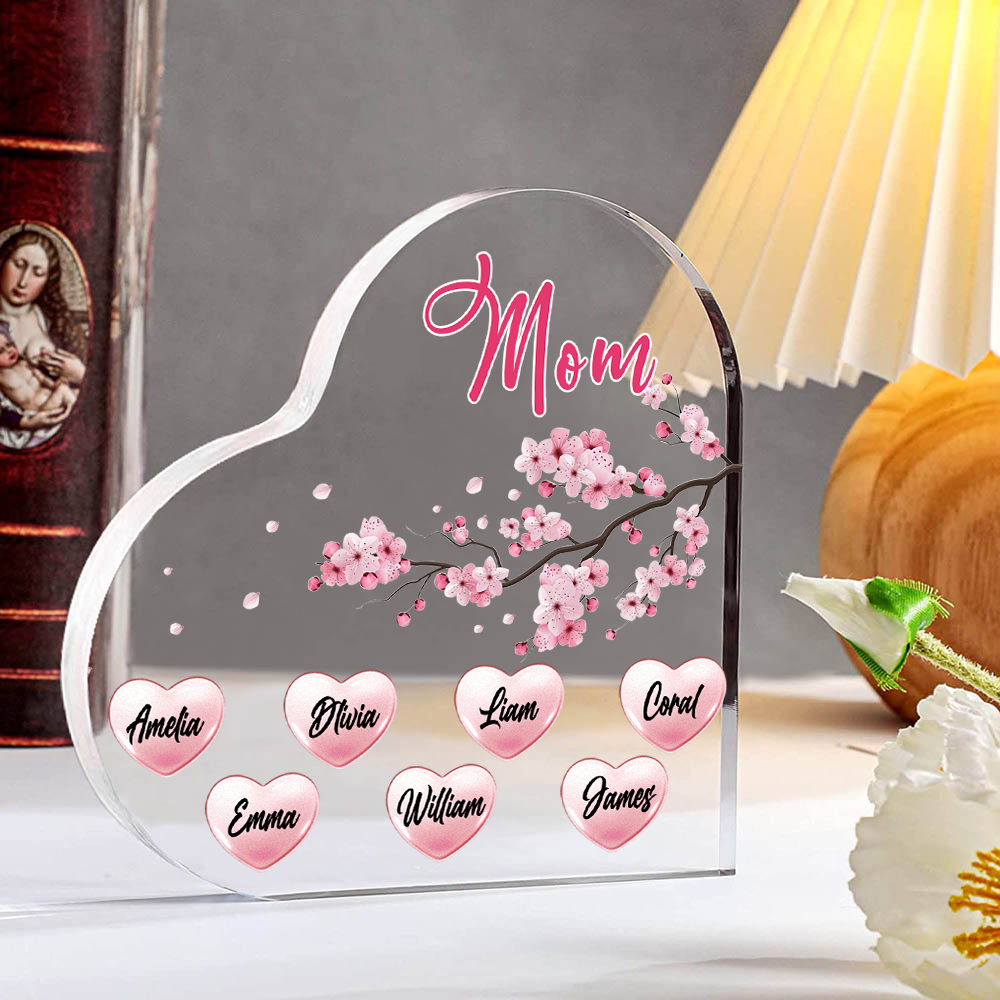7 Names - Personalized Acrylic Heart Keepsake Custom Text Peach Blossom Ornaments Gifts for Grandma/Mother