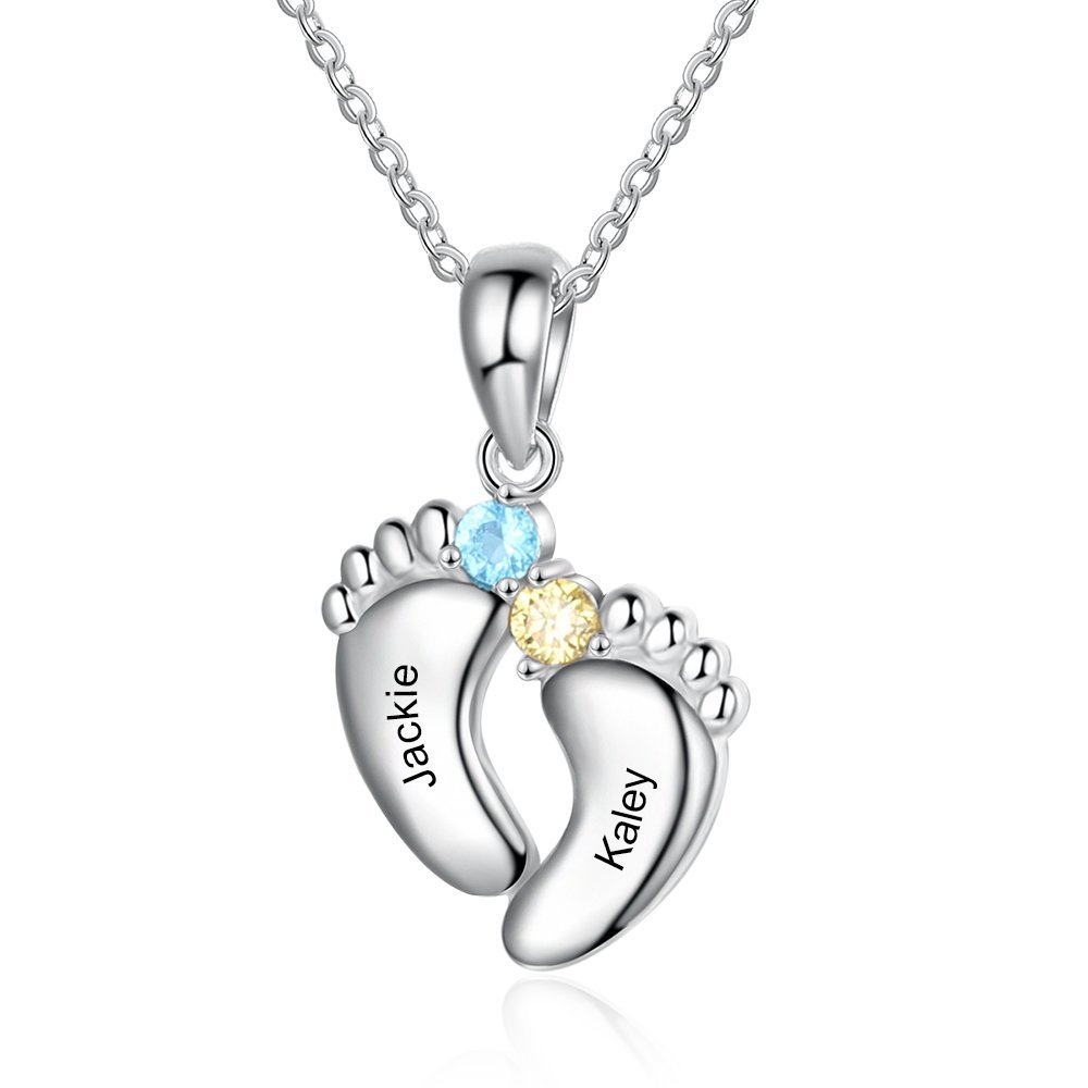 S925 Baby Feet Pendant Necklace with 1-6 Birthstones Engraved Names Gift for Mother