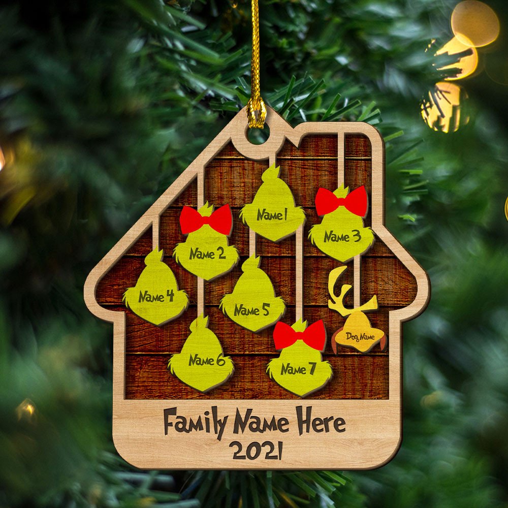 House Ornament for Family Custom 8 Names Wooden Ornament