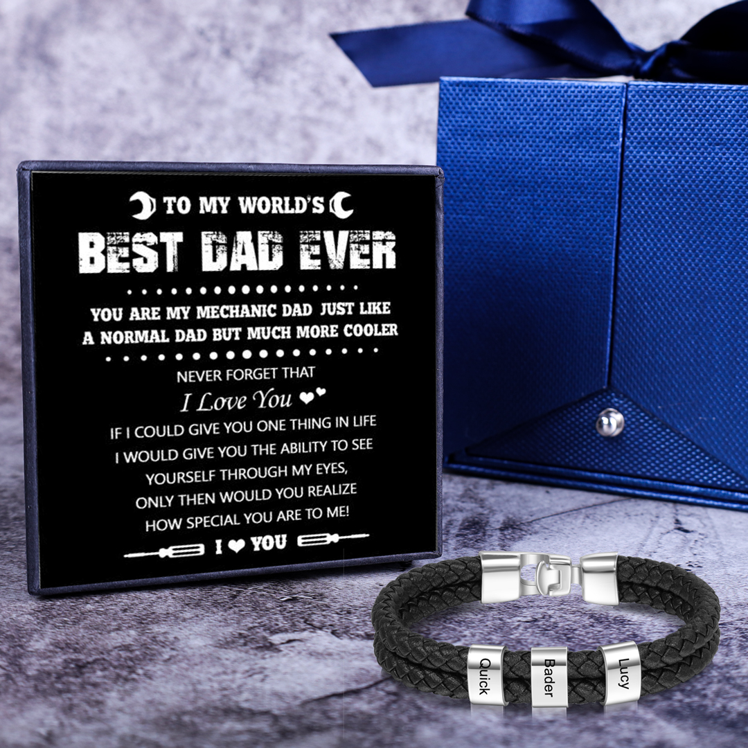 Men Leather Bracelet with Engraved Beads Custom Two Layers Bracelet To My Man