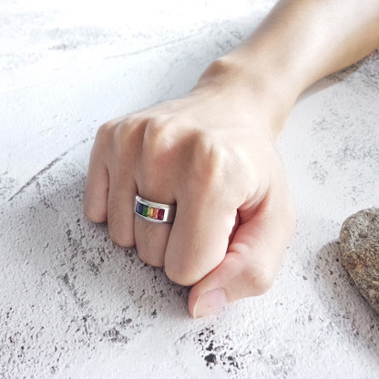 Be proud of who you are. This pride ring is finely crafted with enamel, very beautiful under the light. It is a perfect gift for lesbians, gays, bisexuals, and transgender.