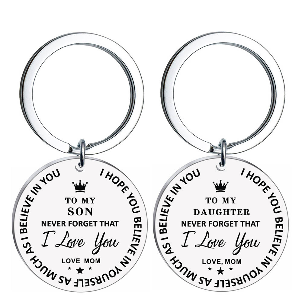 This gorgeous keychain comes engraved with, "Never forget that I love you. I hope you believe in yourself as much as I believe in you". It is the perfect gift for you and your son/ daughter!