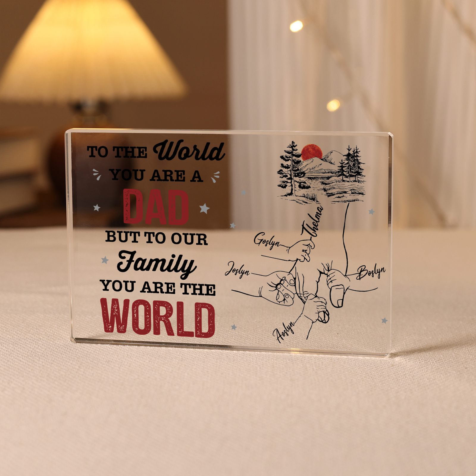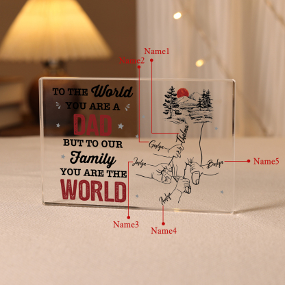 Personalized 5 Names Acrylic Rectangle Keepsake Holding Hands Acrylic Plaque - To The World, You Are A Dad, But To Our Family, You Are The World
