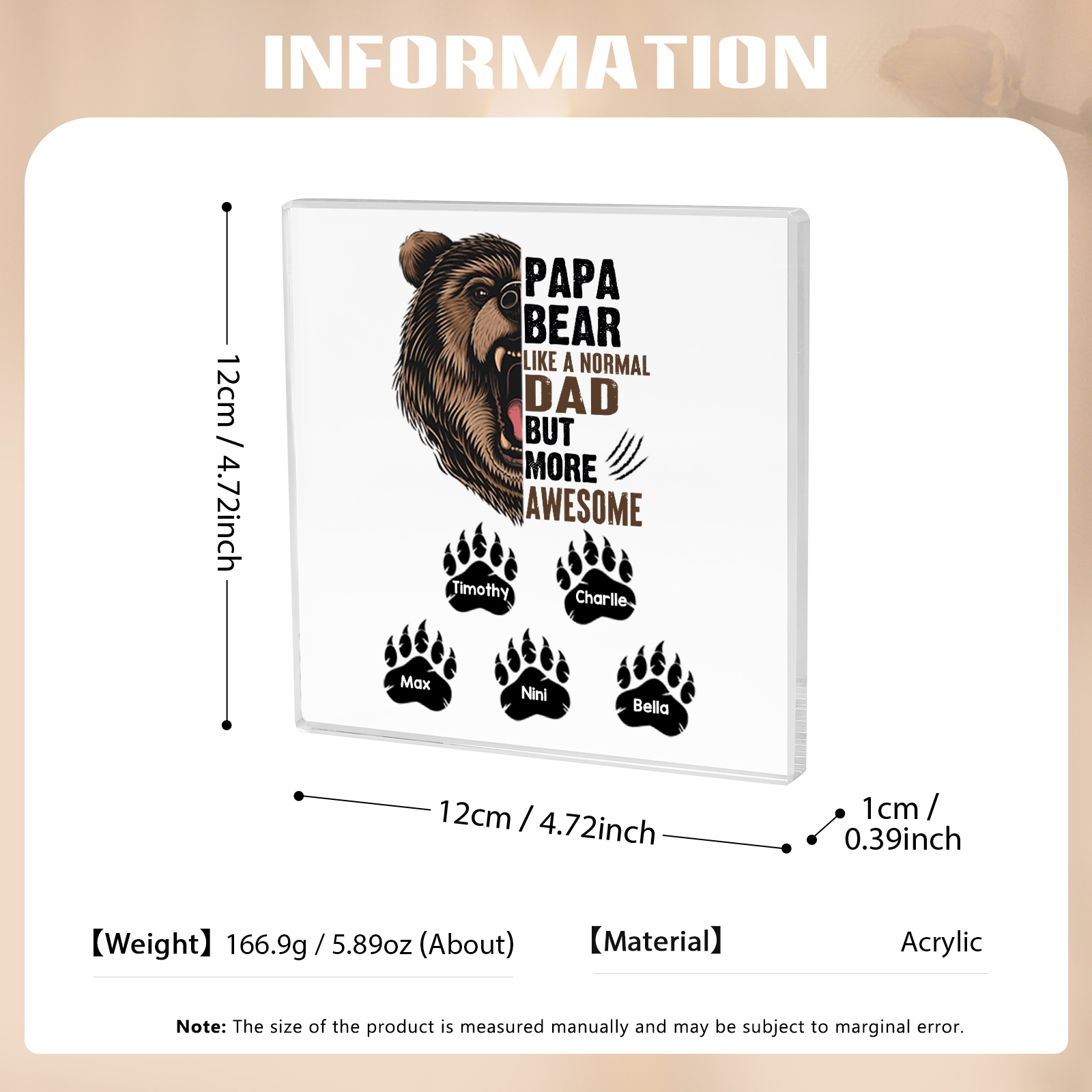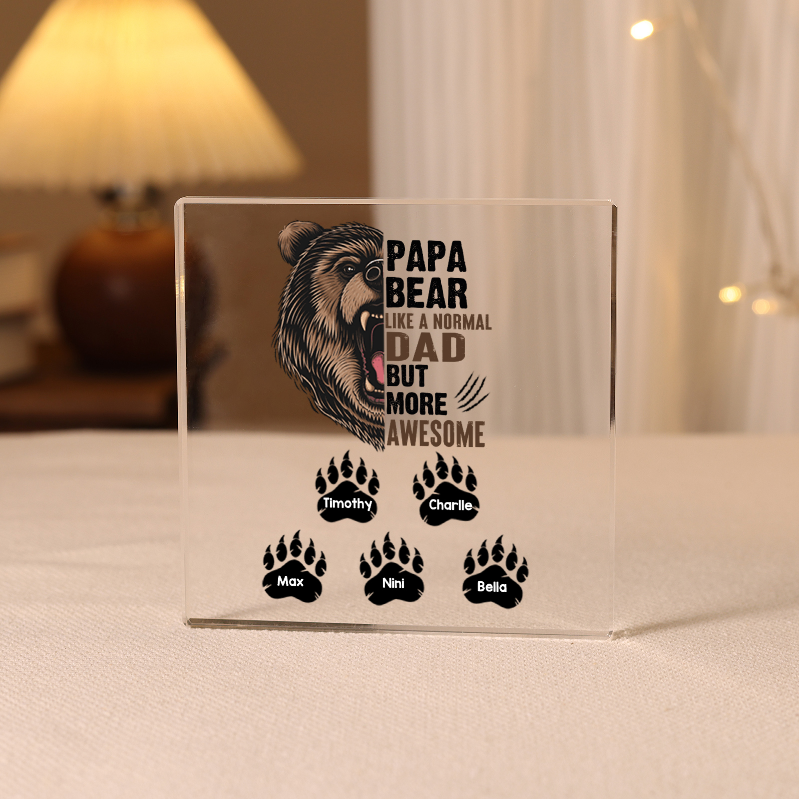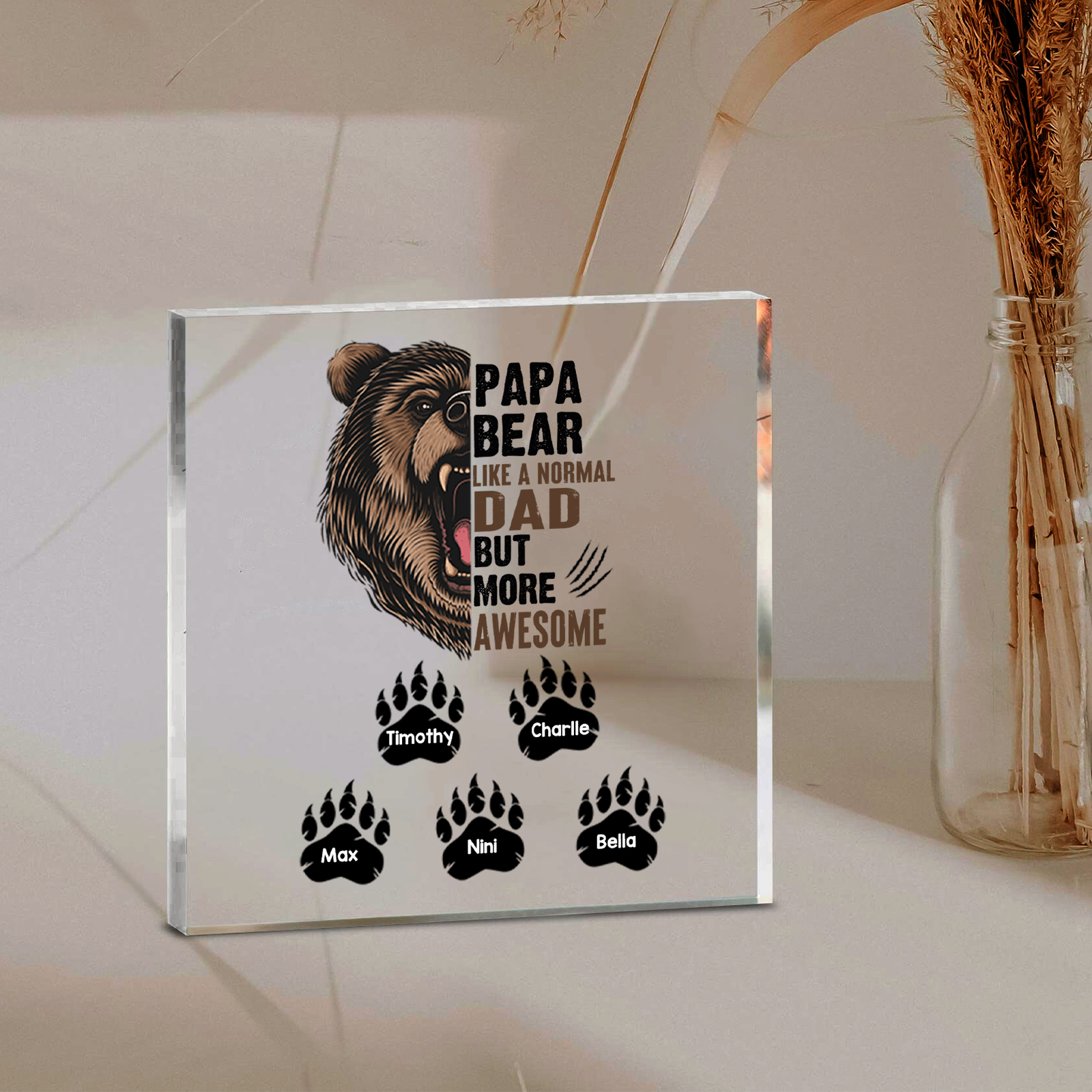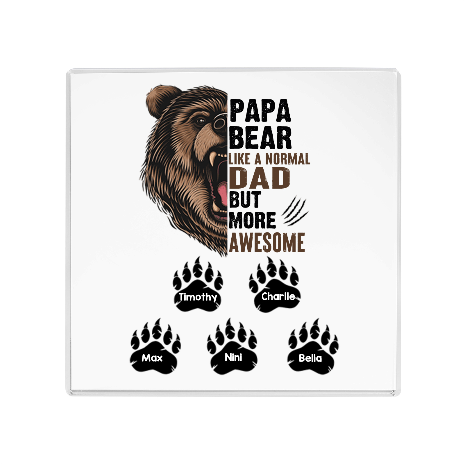 Personalized 5 Names Acrylic Square Keepsake Rectangle Plaque Father's Day Gifts - Papa Bear, Like Normal Dad But More Awesome