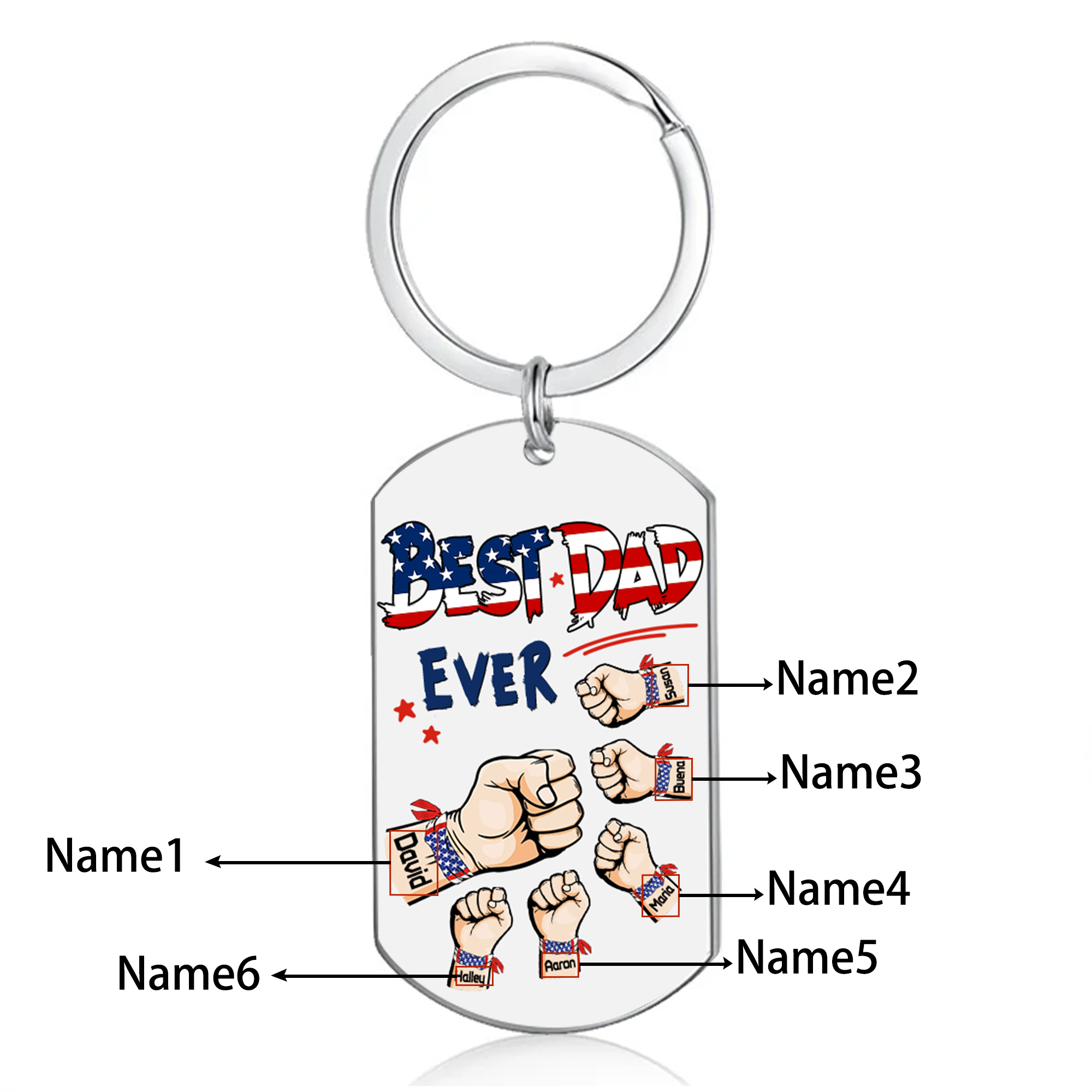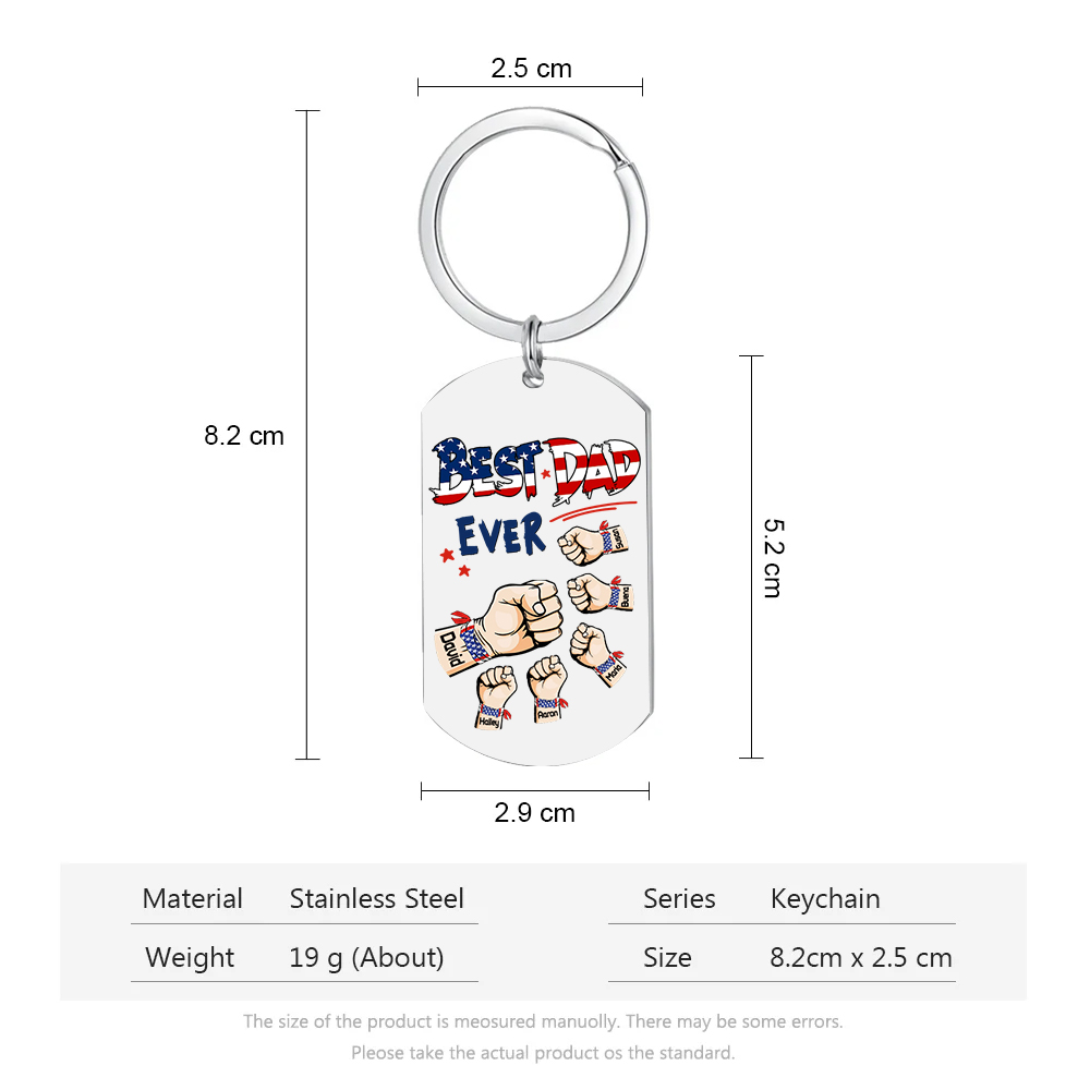 Personalized 6 Names American Flag Keychain Fist Bump Keychain Father's Day Gifts - Best Dad Ever