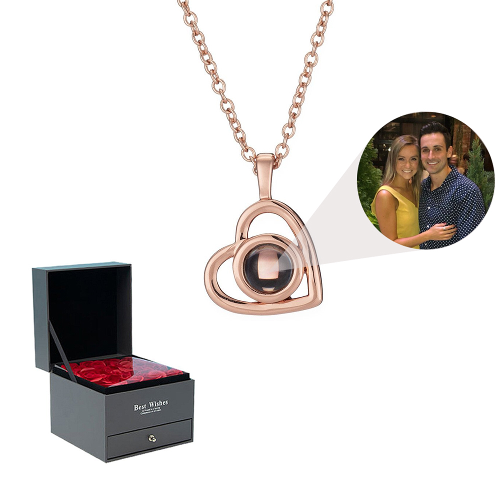 Personalized Heart Photo Projection Necklace with Jewelry Box