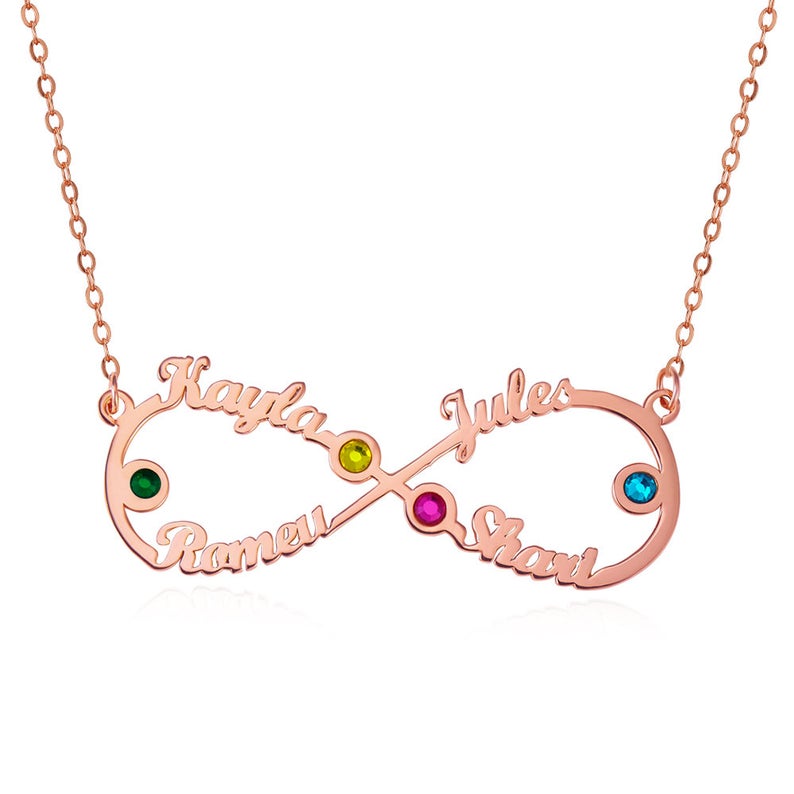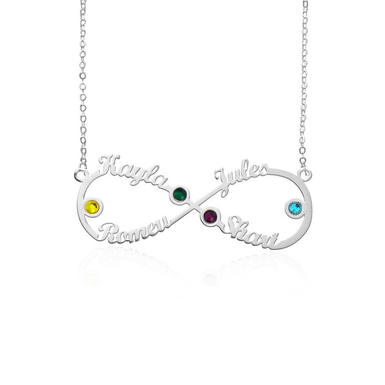 Personalized Infinity Name Necklace Custom 4 Birthstones Gifts for Her