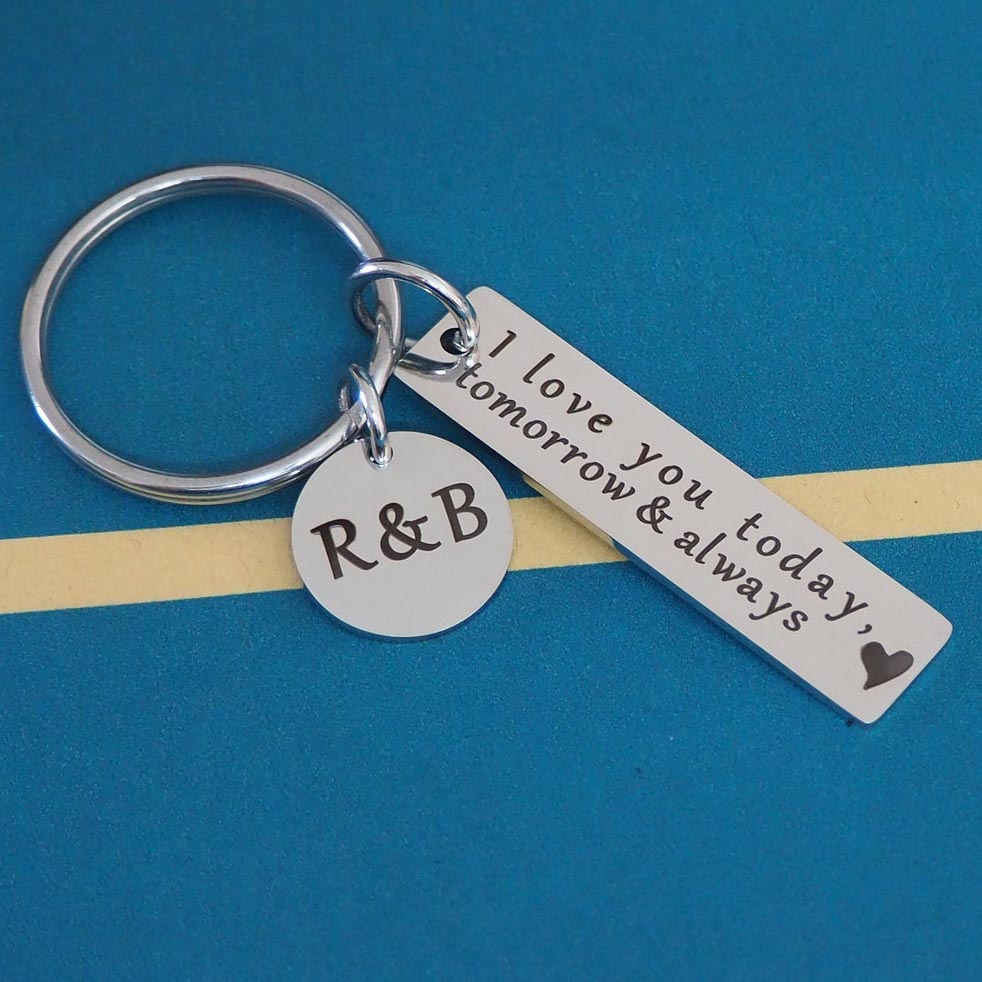 Personalized Initial Couple Keychain "I Love You Today, Tomorrow & Always"