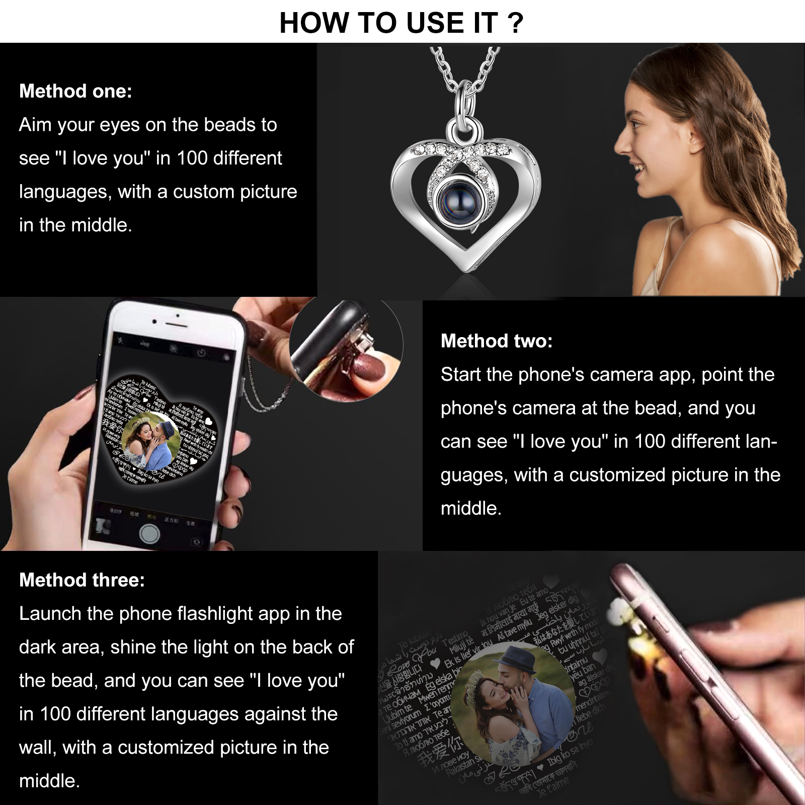 • A Picture Inside – Each necklace has a custom picture inside. You can upload any picture which you favorite. The clearer the uploaded photo, the better the effect. Look inside or use your phone's camera to reveal the picture.