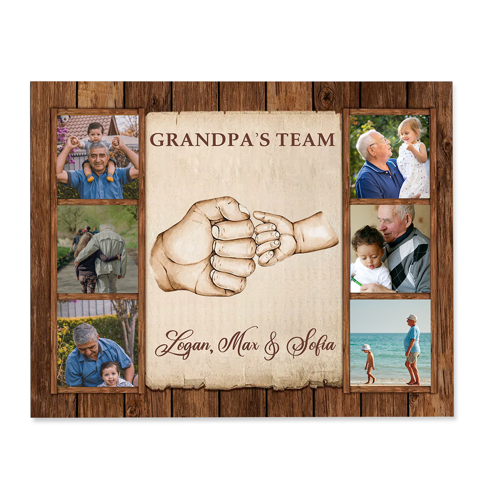 Personalized Photo Wall Art Frame Fist Signs Wood Panel Painting Gift for Grandpa Family