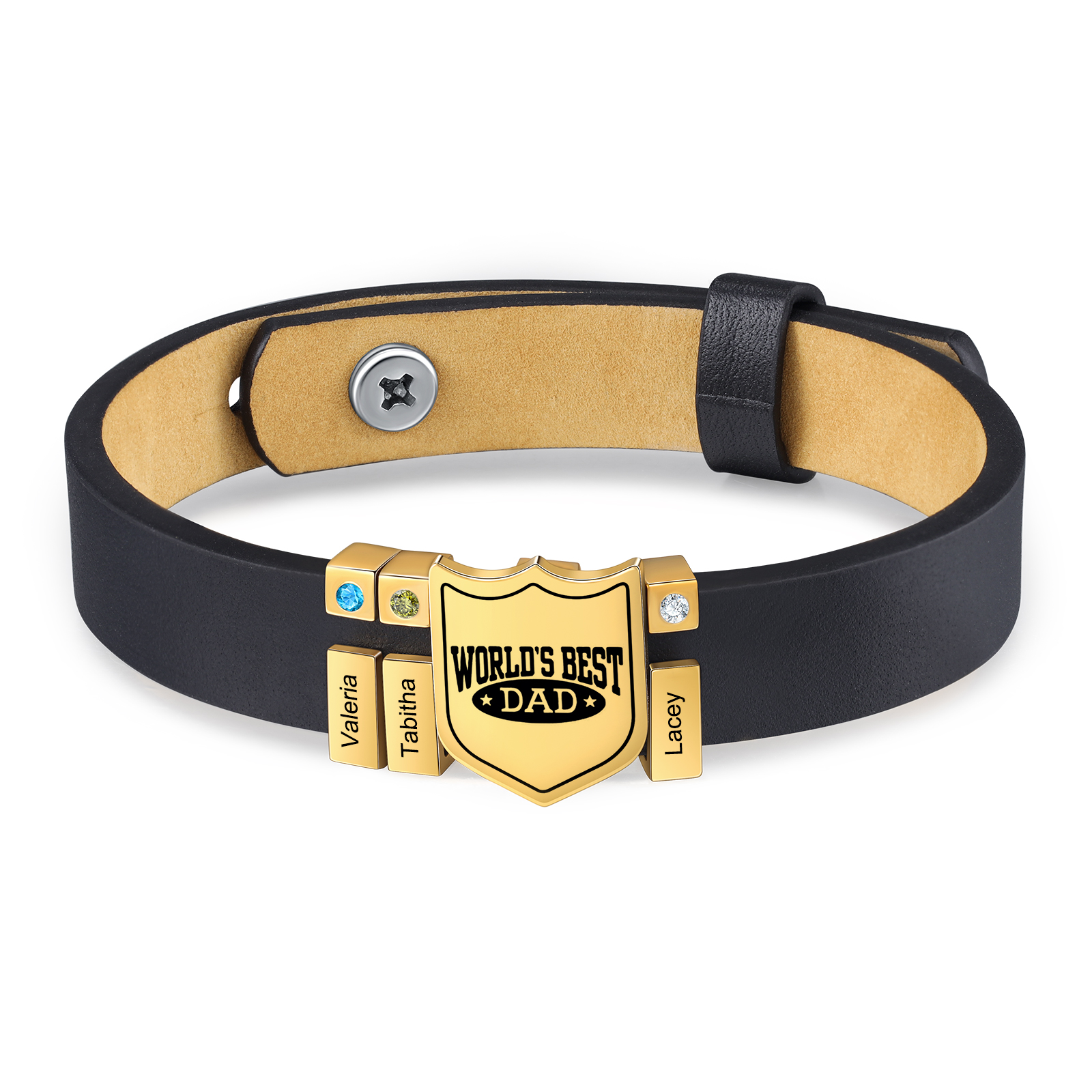 Men Leather Bracelet Personalized 3 Birthstones and Names Gift for Dad