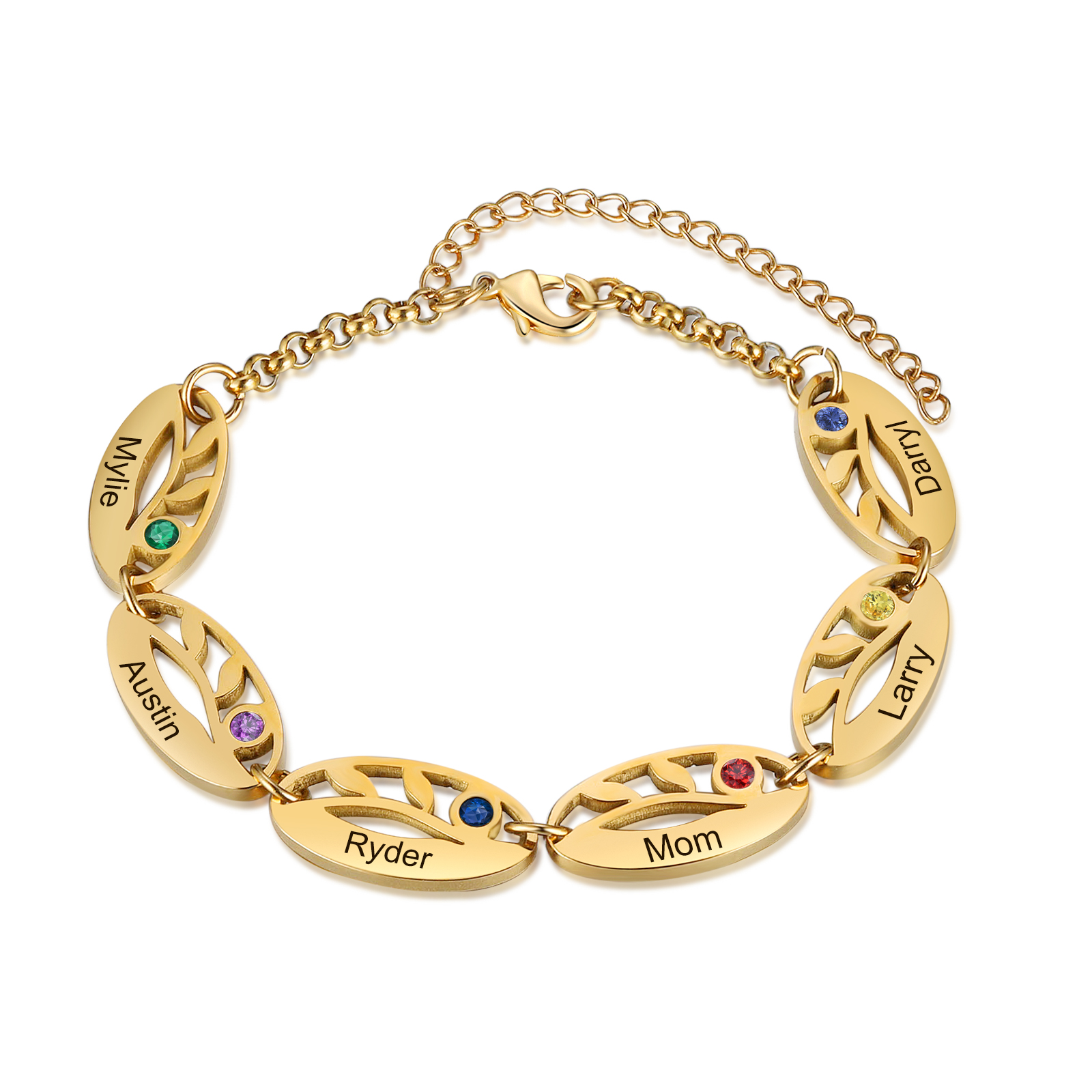 Rose Birthstone Bracelet Personalized 6 Names Women Bracelet