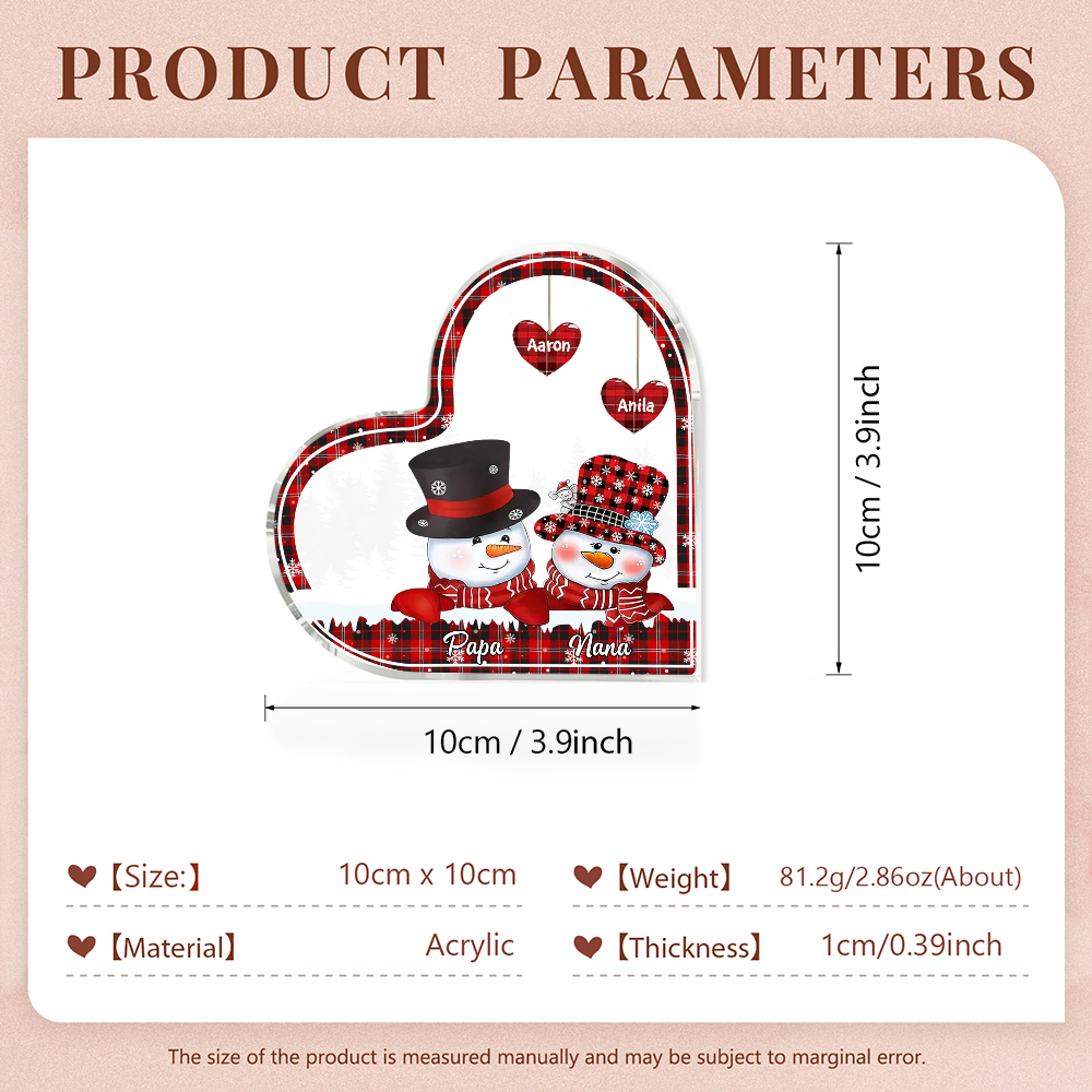 Acrylic Heart Keepsake Customized 4 Names Christmas Snowman Decor Personalized Gifts for Grandma Mom