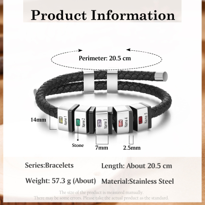 Custom Men Braided Leather Bracelet Engrave 5 Names Beaded Wrap Bracelet For Father's Day