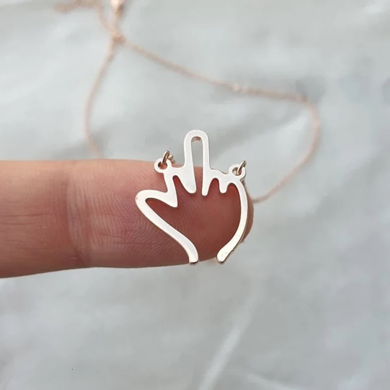 Funny Middle Finger Pendant Necklace Friendship Couple Gifts