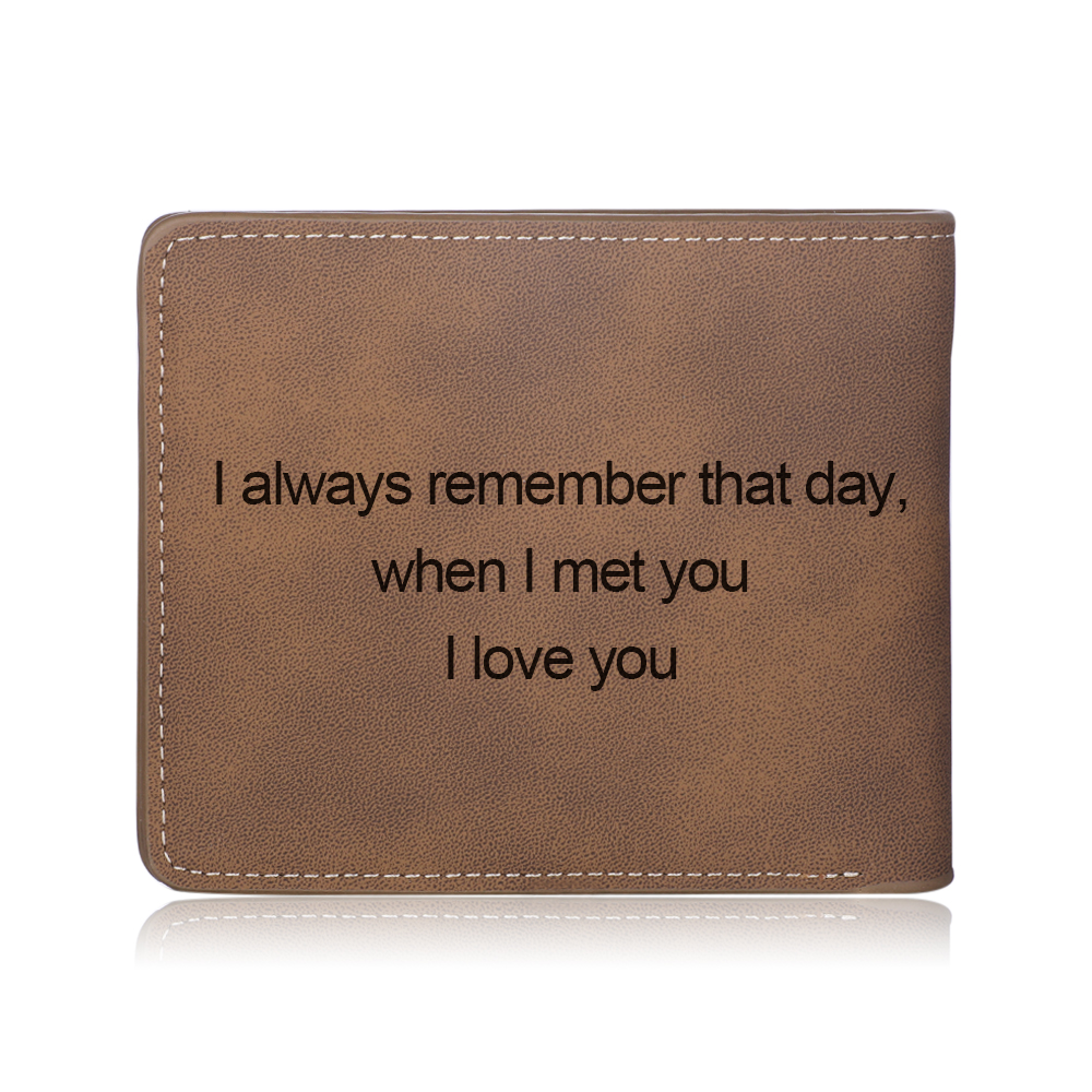 Wallet can be engraved on the back side with a message, name or date.
