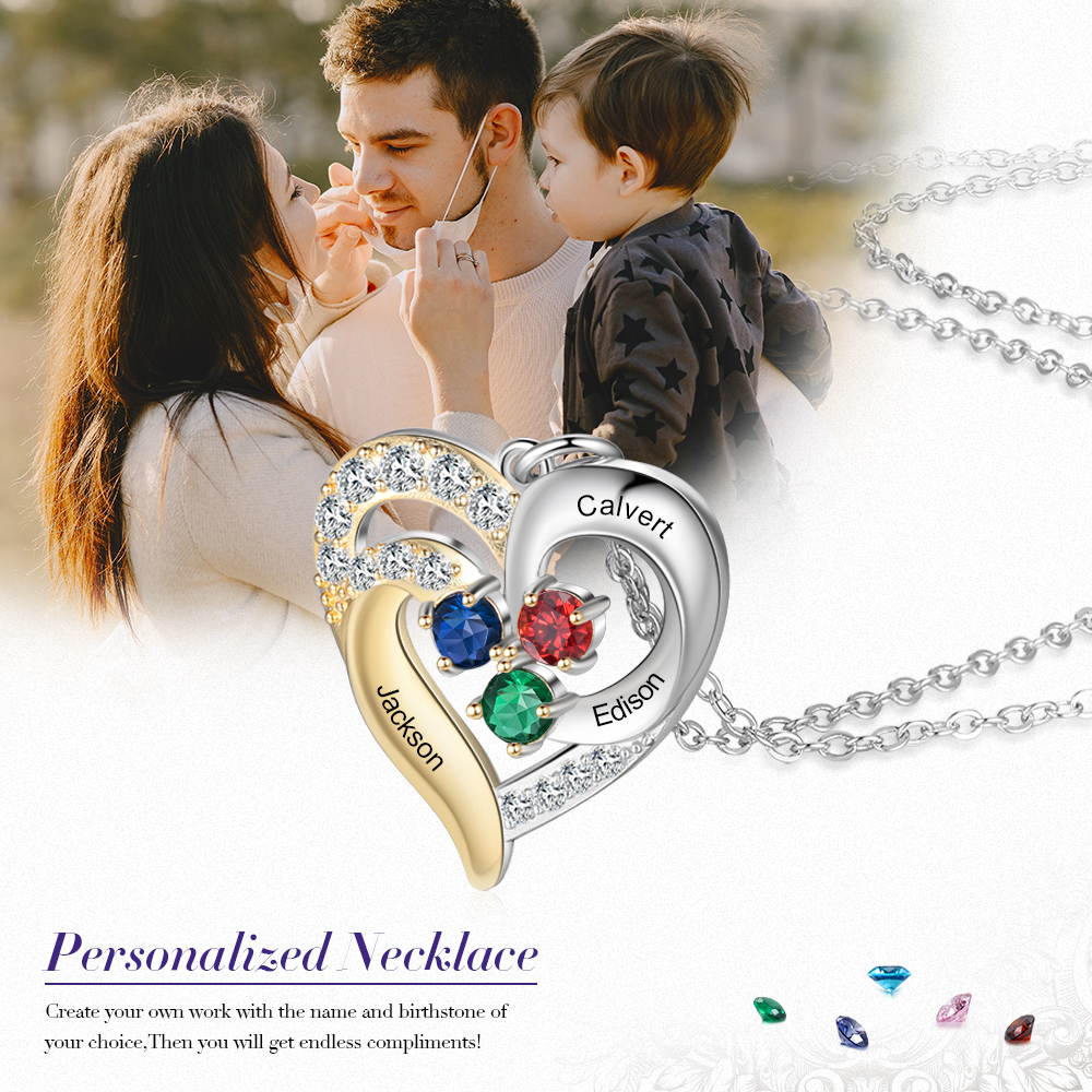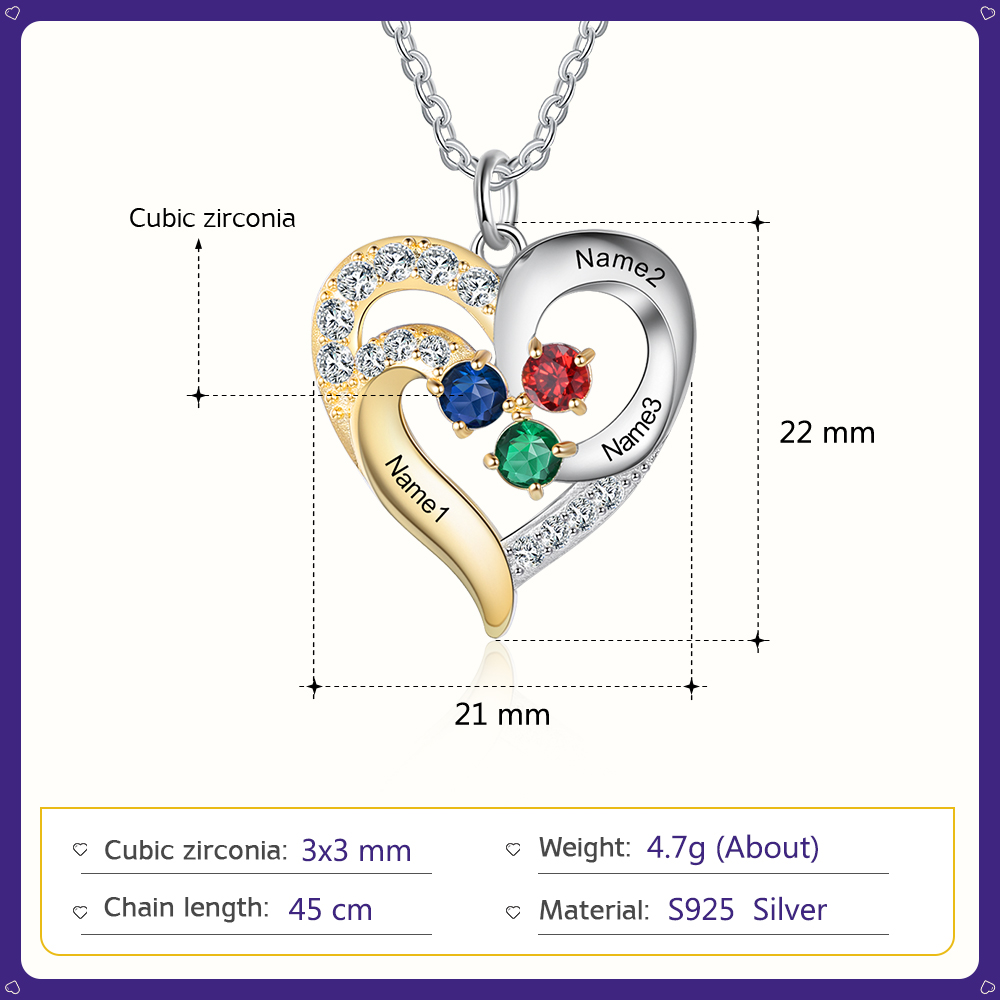 Personalized: Can choose 3 birthstones and engrave 3 names on the pendant.