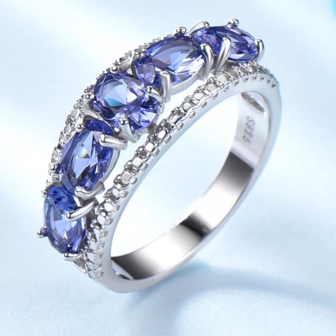 Vintage Oval Tanzanite Ring with 5 Stones In Sterling Silver
