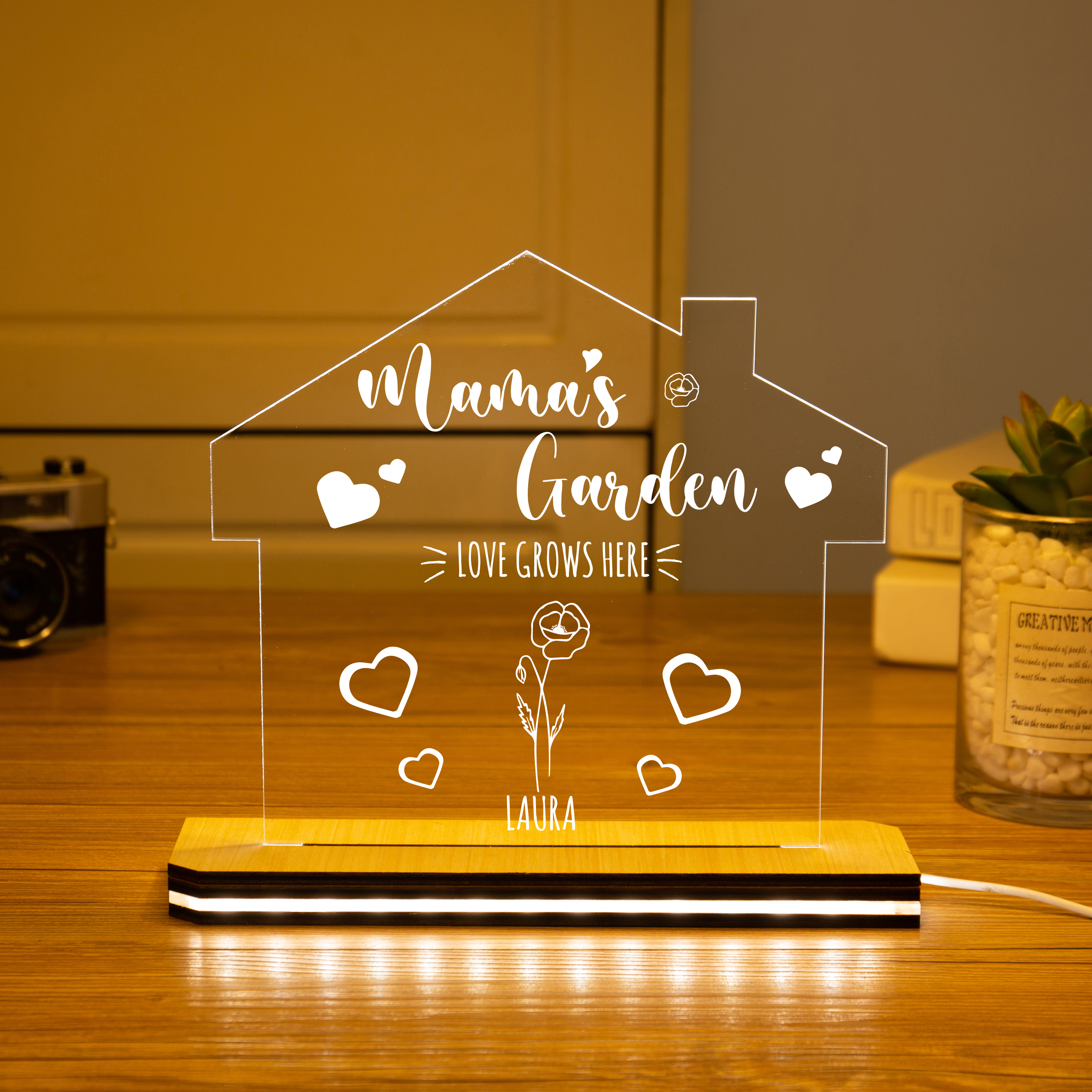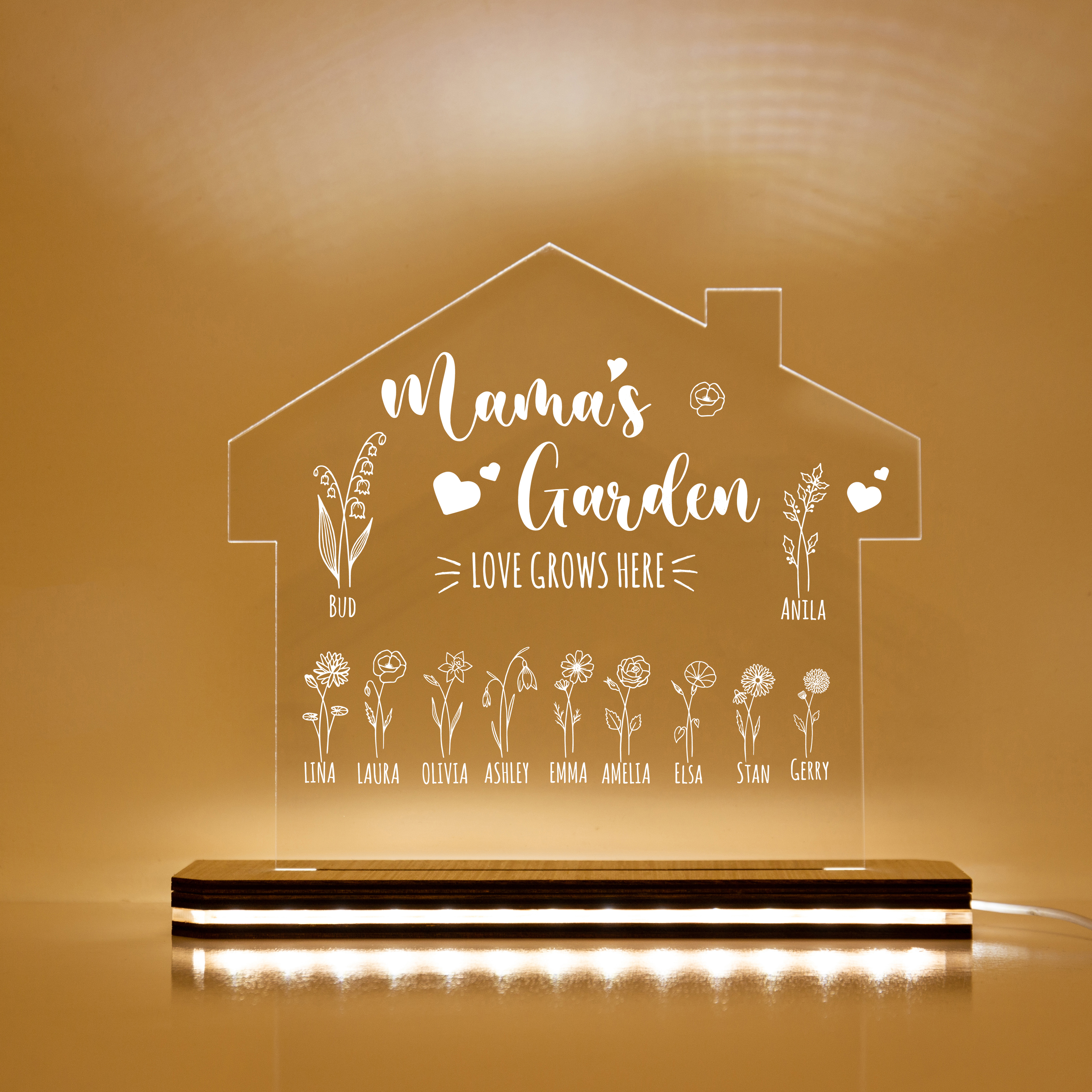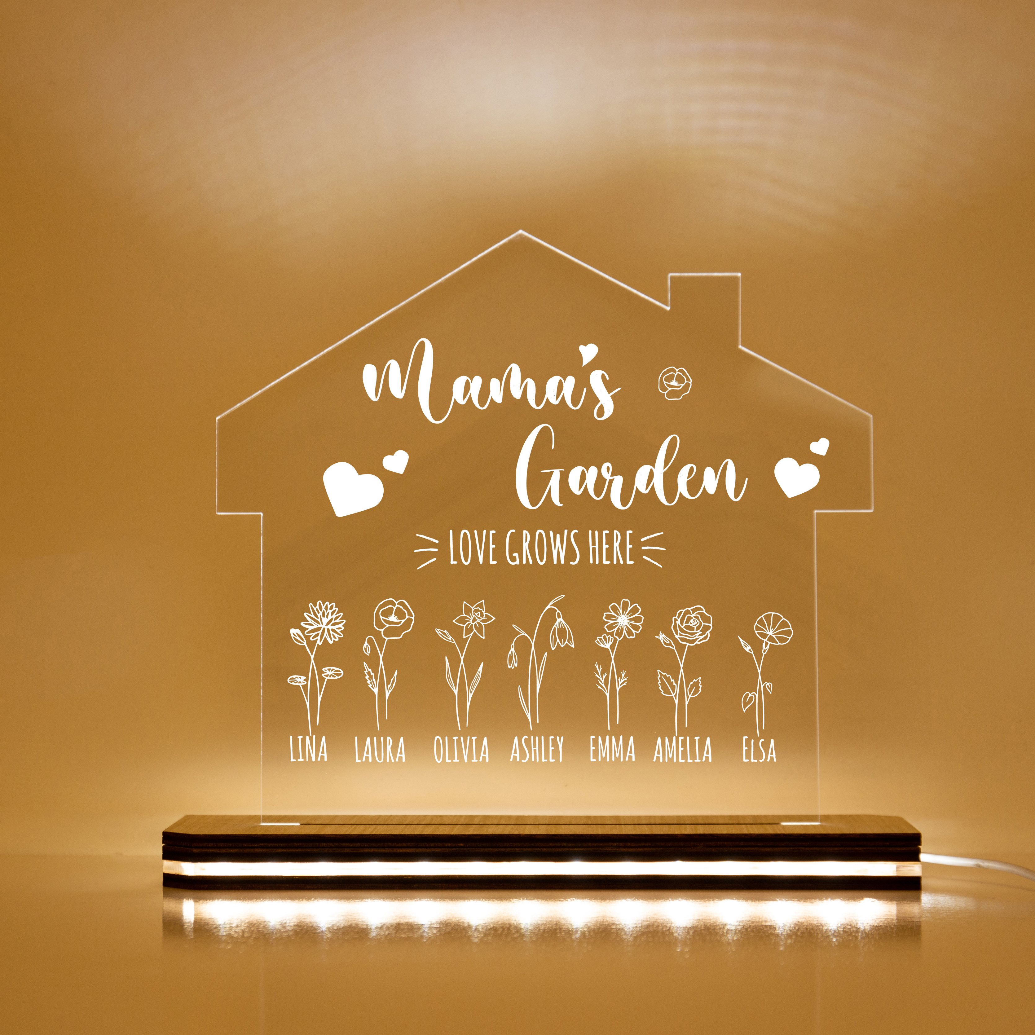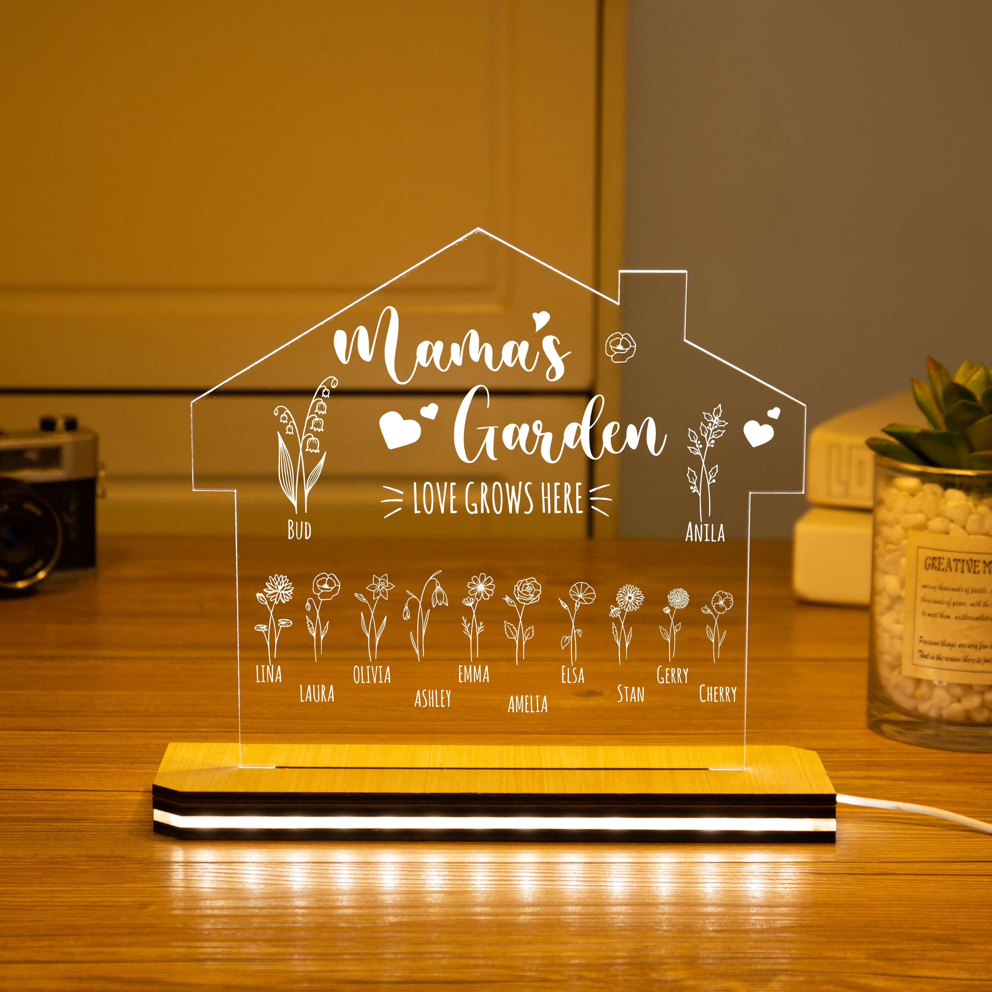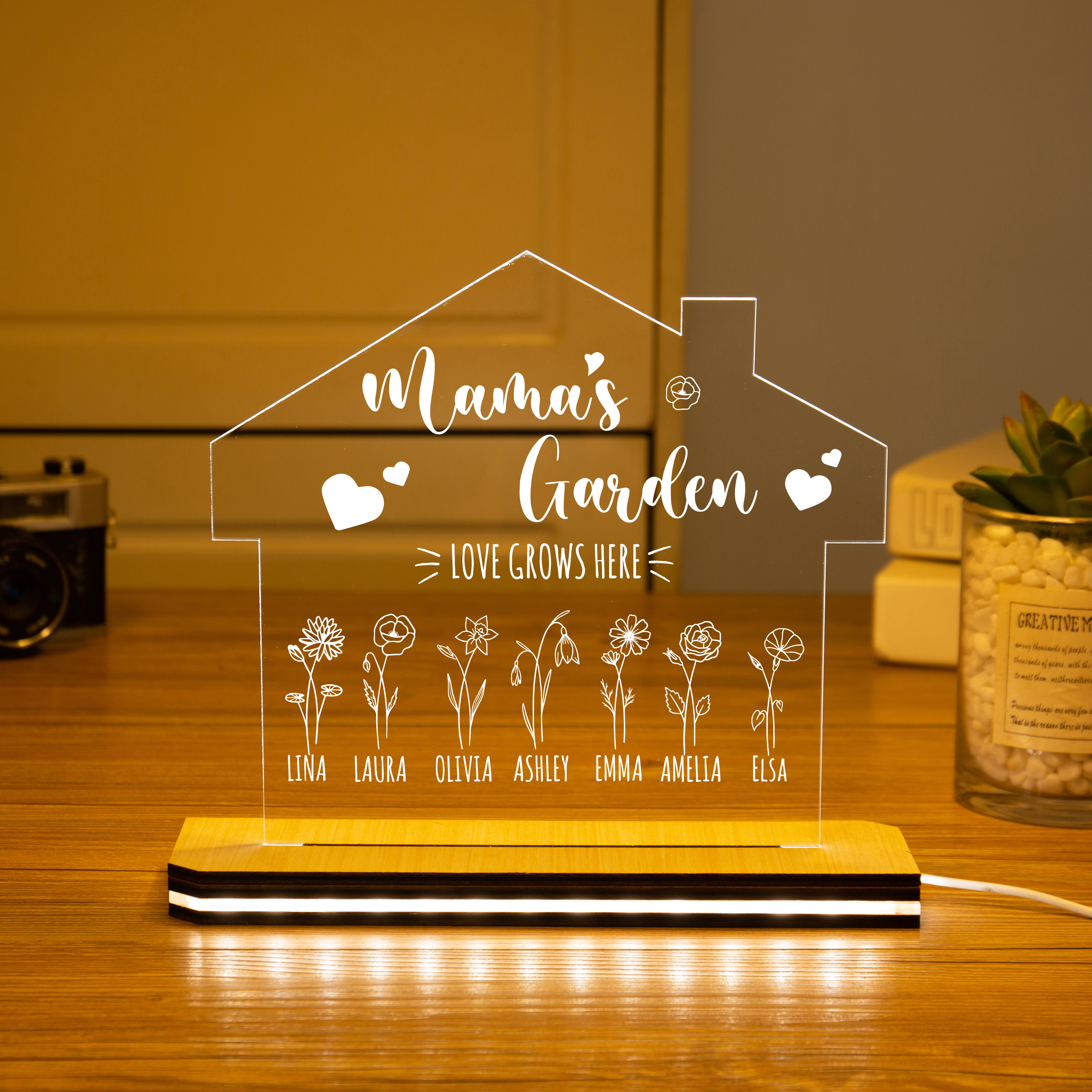 Custom Mama's Garden Night Light Engrave 7 Kids' Birth Flower LED Lamp Home decor