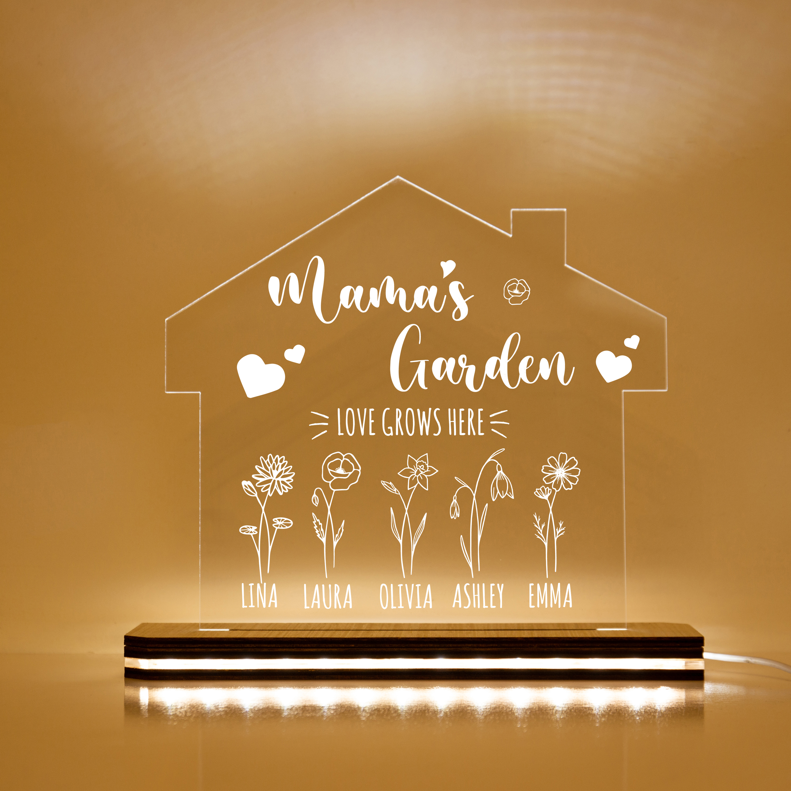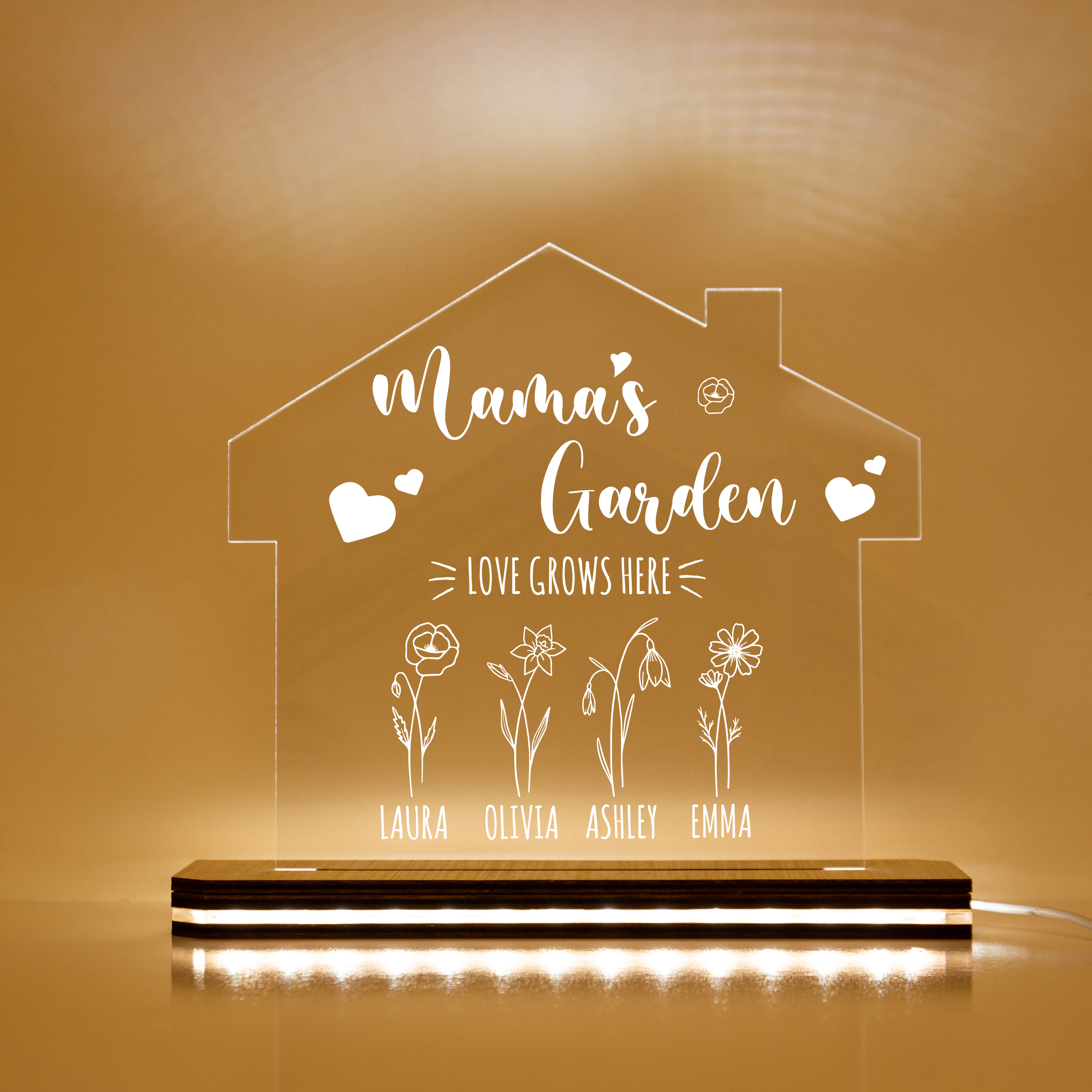Custom Mama's Garden Night Light Engrave 4 Kids' Birth Flower LED Lamp