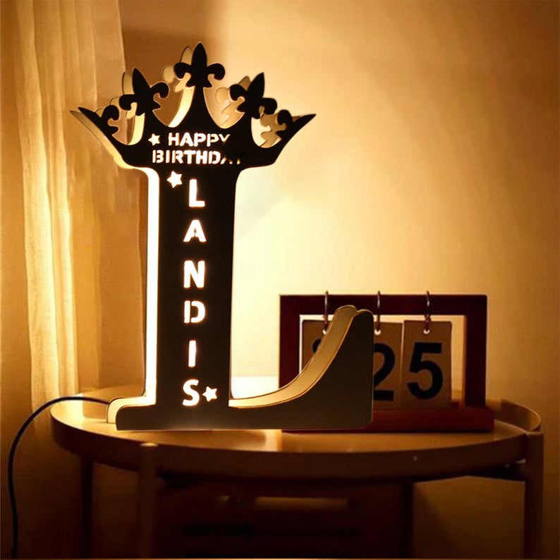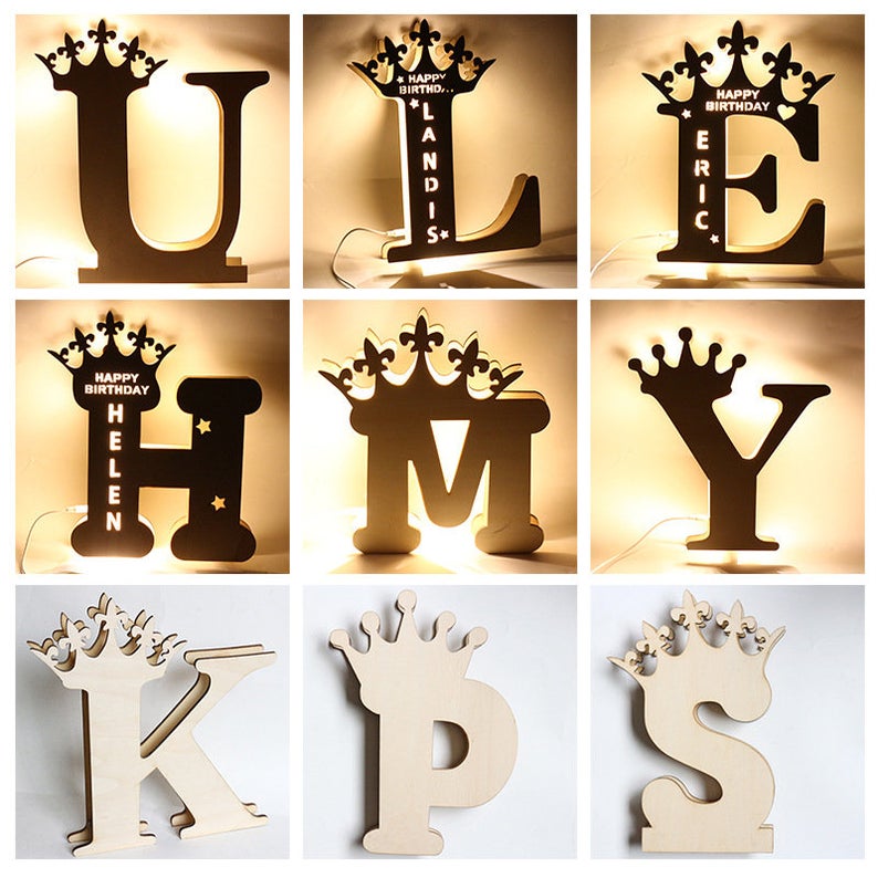 Personalized Crown Letter Night Light Custom Name Wall Light for Family