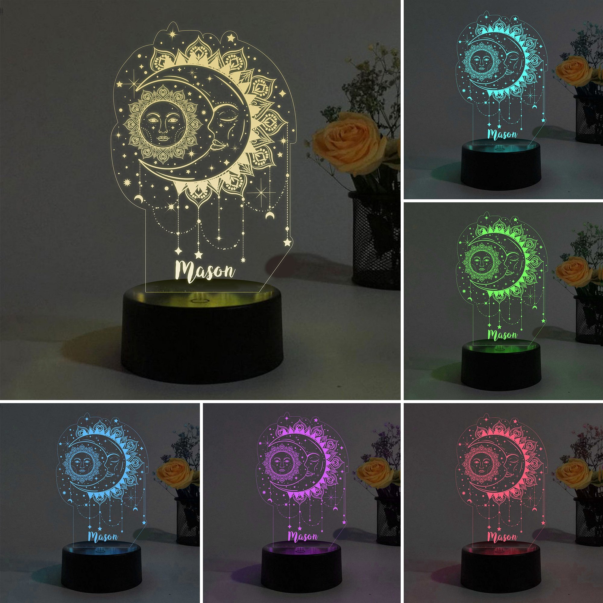 Sun Moon Night Light Personalized Name Colorful LED Lamp for Kids
