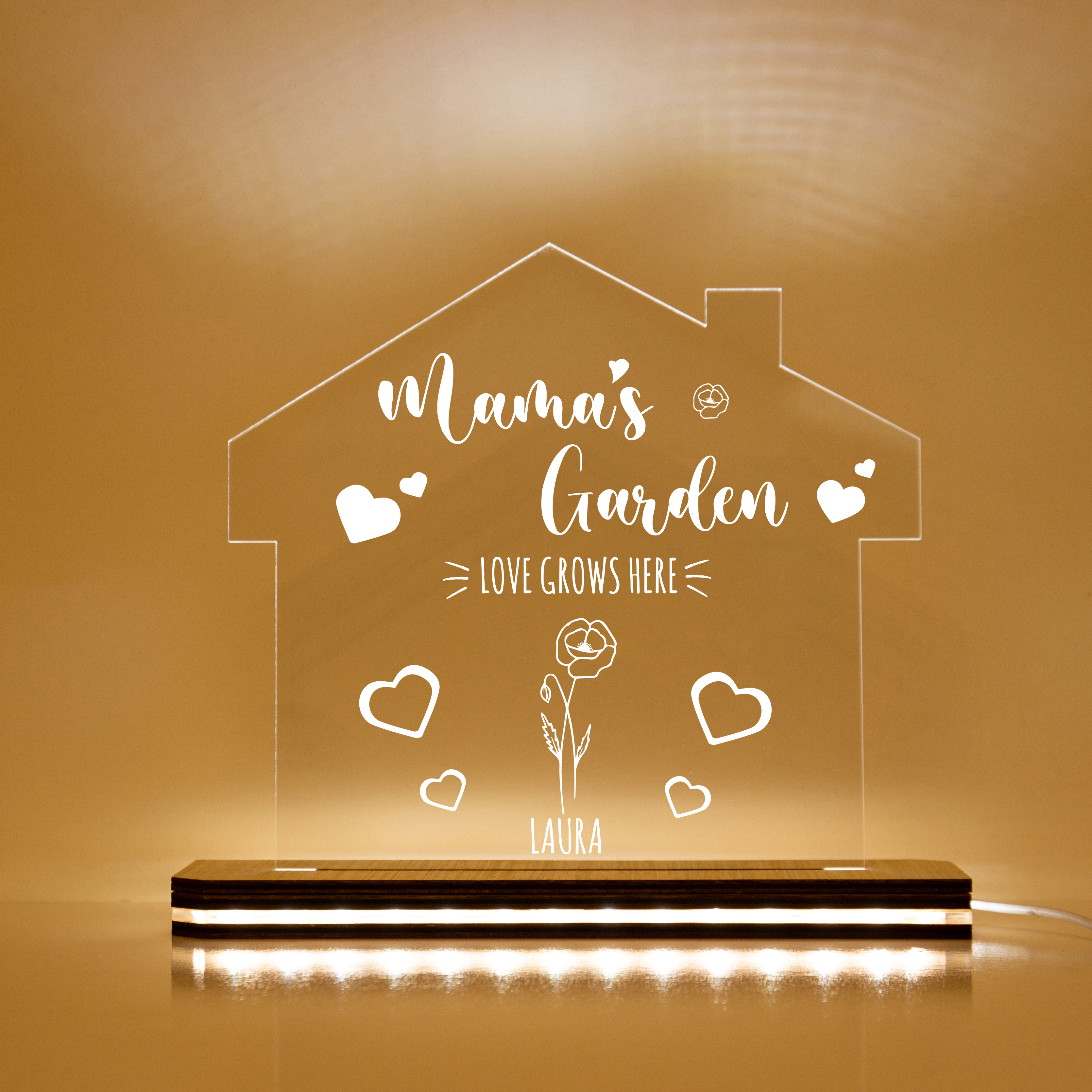 Custom Mama's Garden Night Light Engrave 1 Kid's Birth Flower LED Lamp
