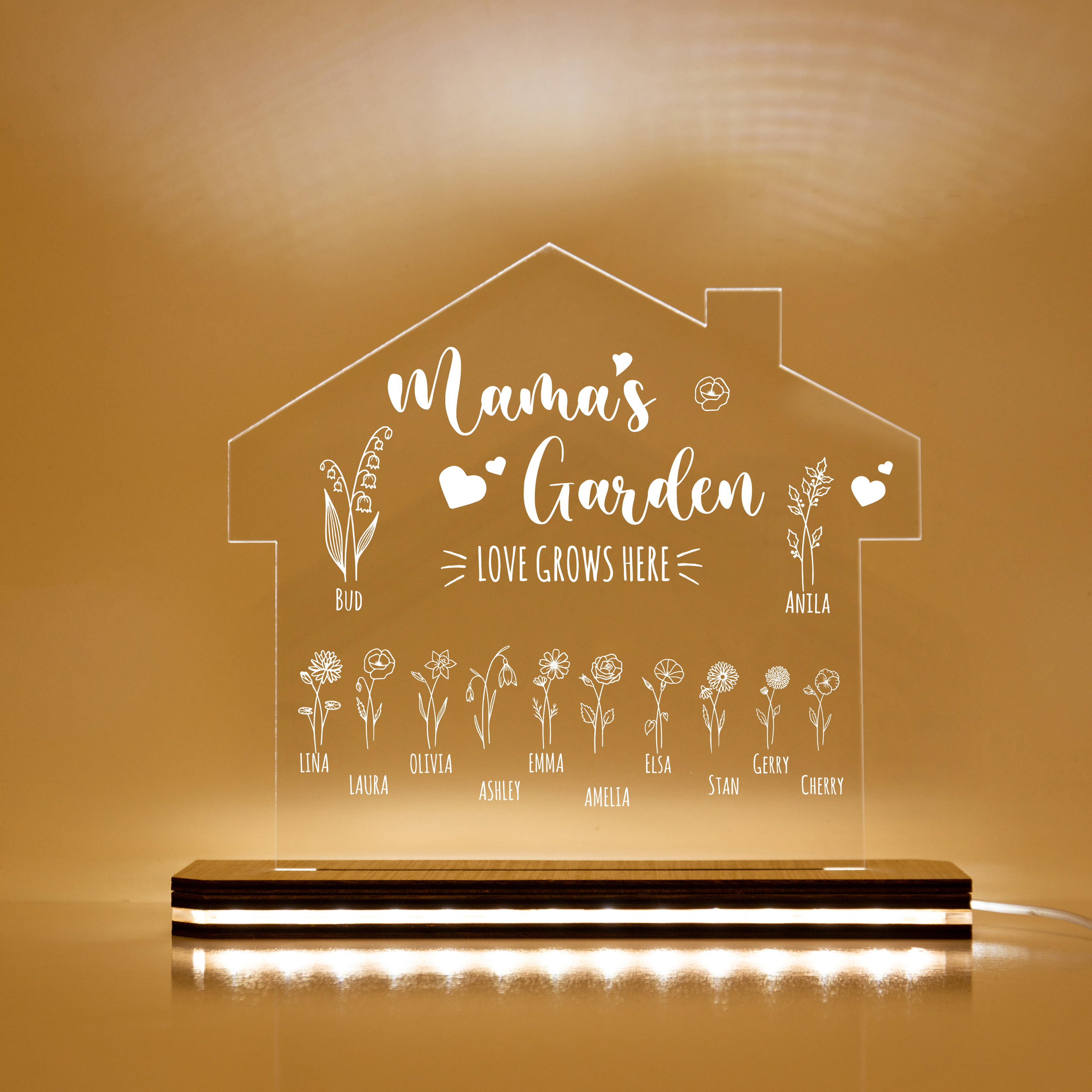 Custom Mama's Garden Night Light Engrave 12 Kids' Birth Flower LED Lamp