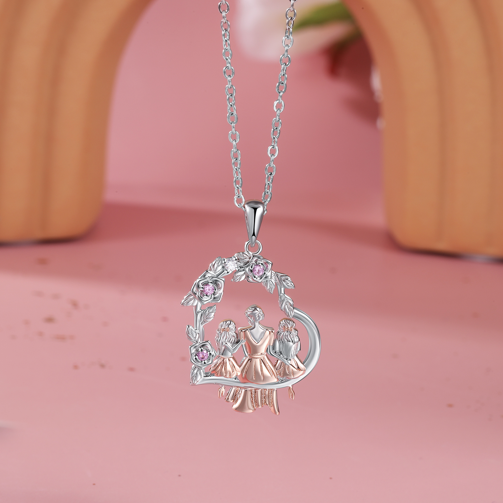 Mother and Daughters Necklace Heart Flower Pendant Necklace for Her