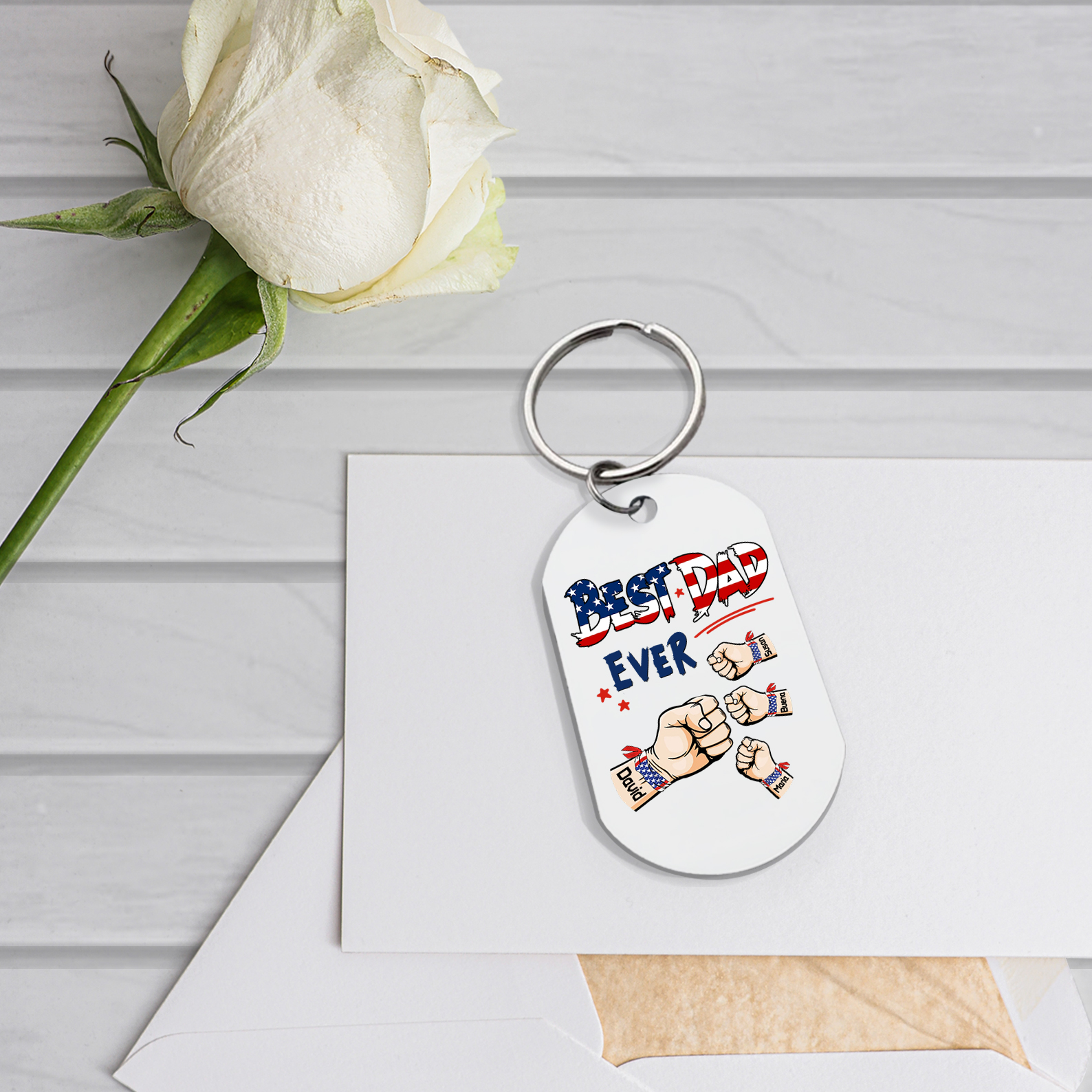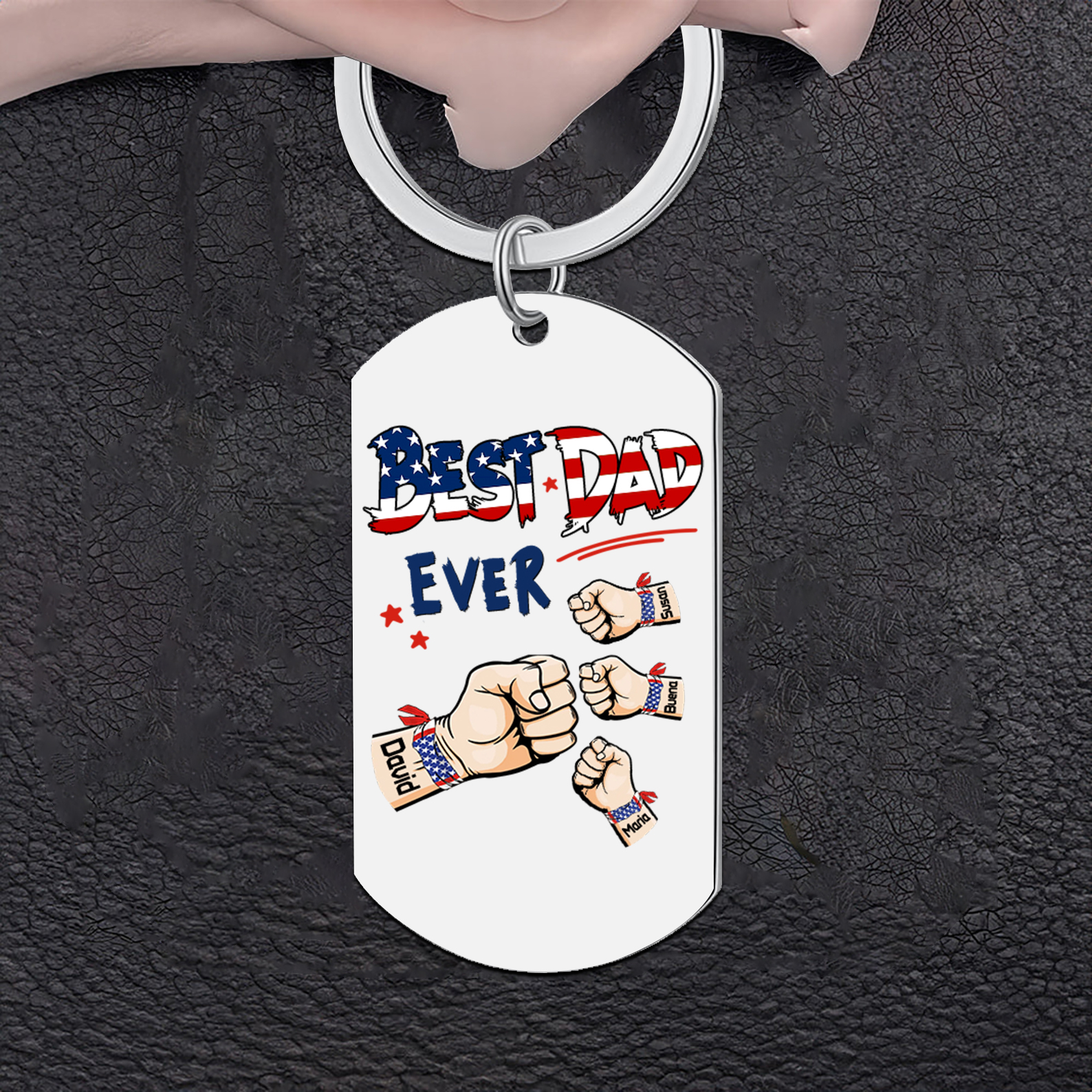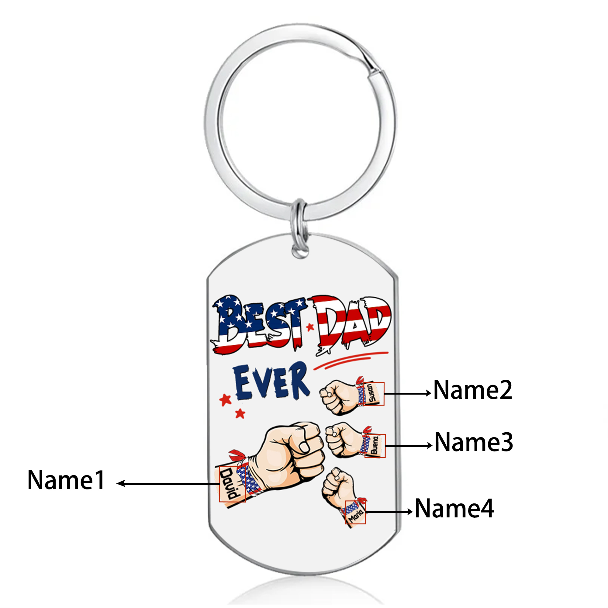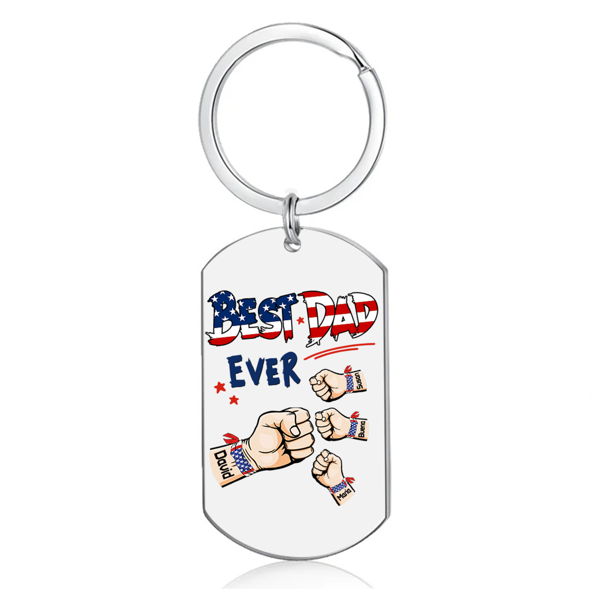 Personalized 4 Names American Flag Keychain Fist Bump Keychain Father Gifts - Best Dad Ever