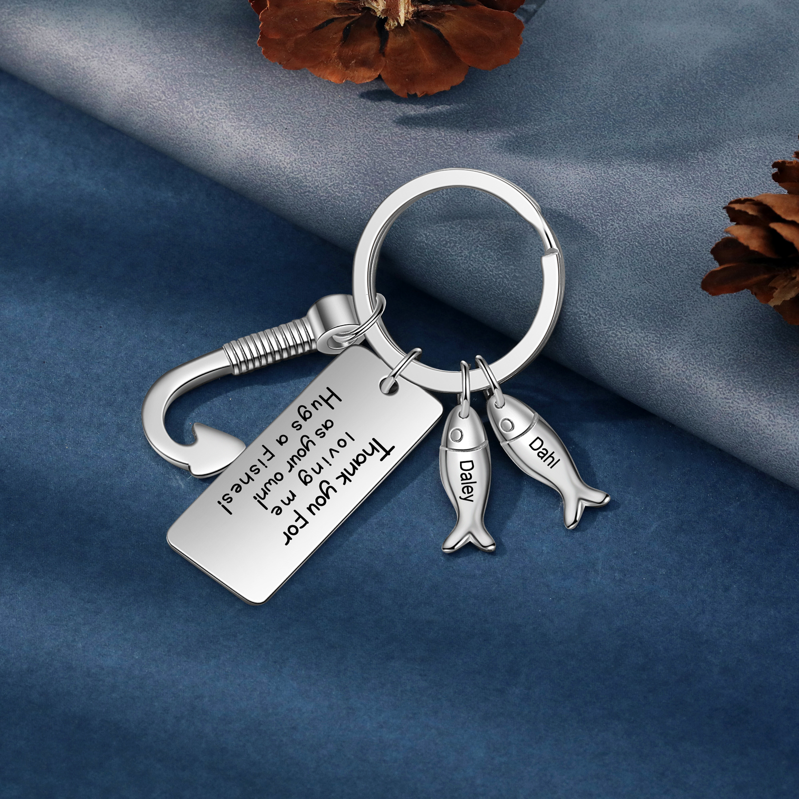 Personalized Fishing Hook Keychain Engraving 2 Names Keychain Silver Gift for Men