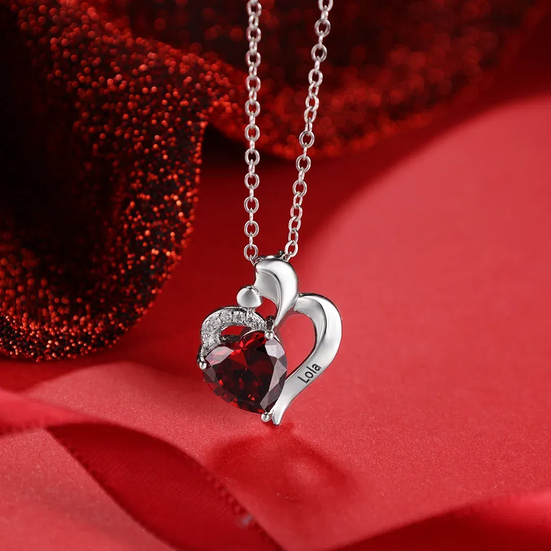 Mother and Child Necklace with Birthstone Personalized Heart Pendant Necklace for Mom