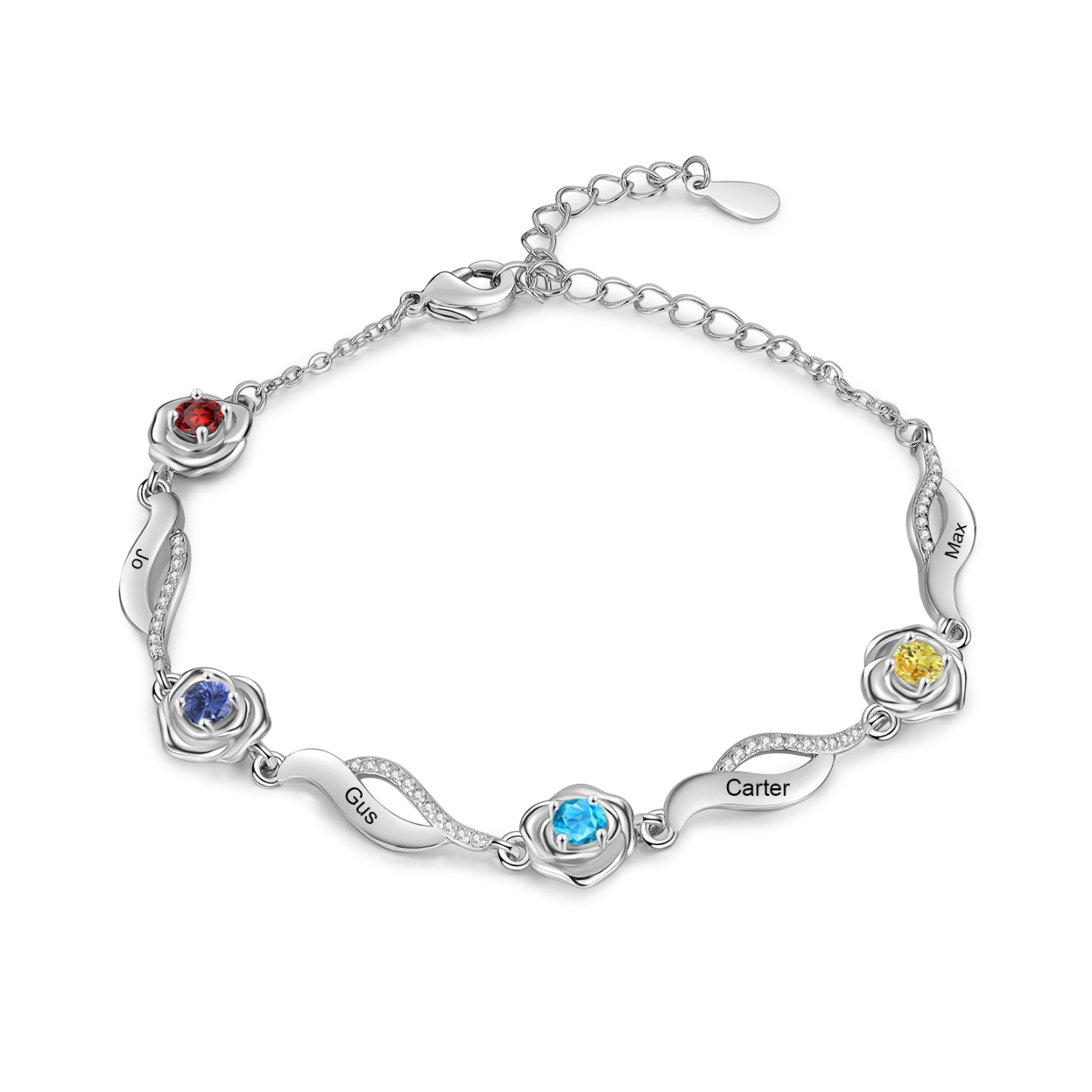 Personalized Rose Birthstone Bracelet Custom 4 Names Bracelet for Her