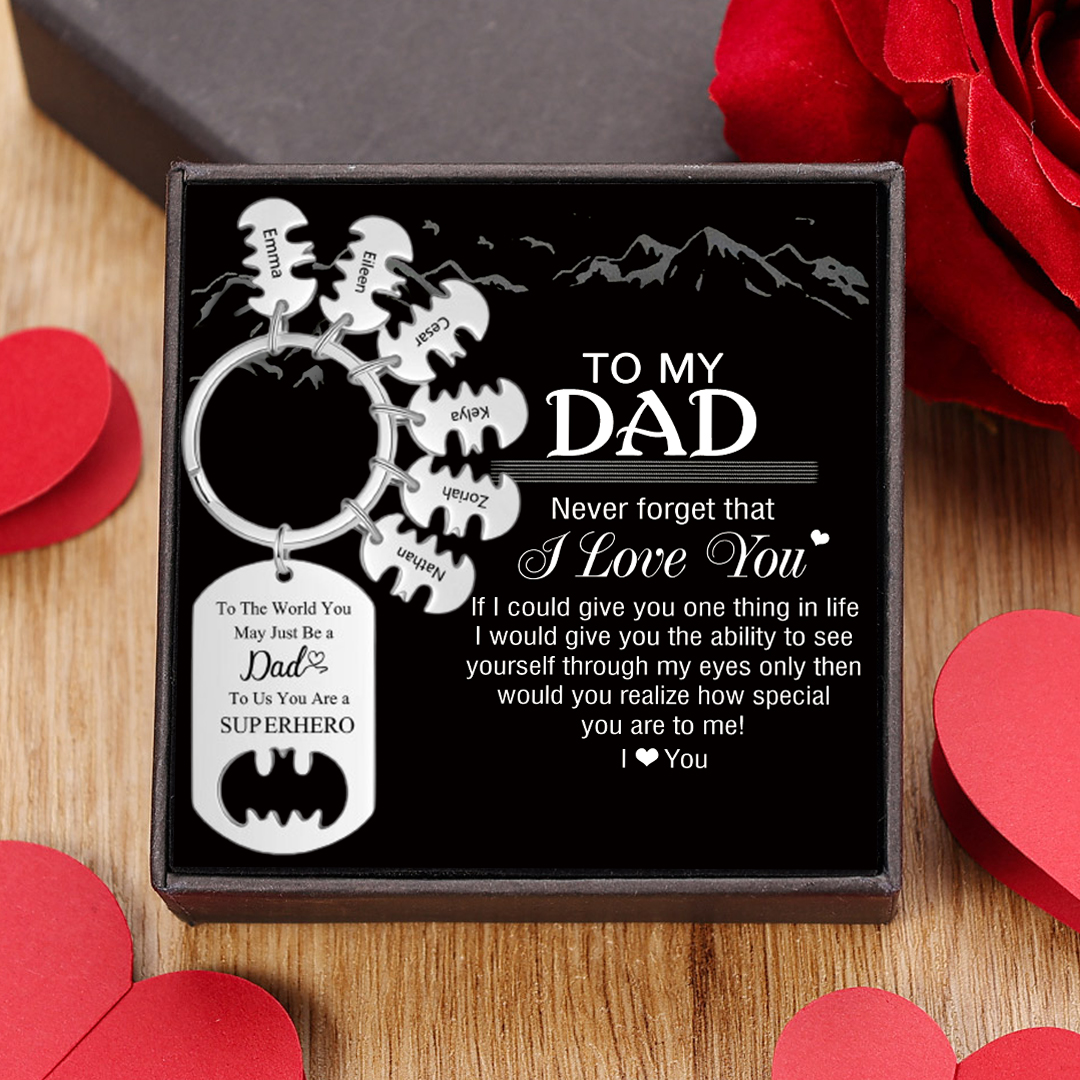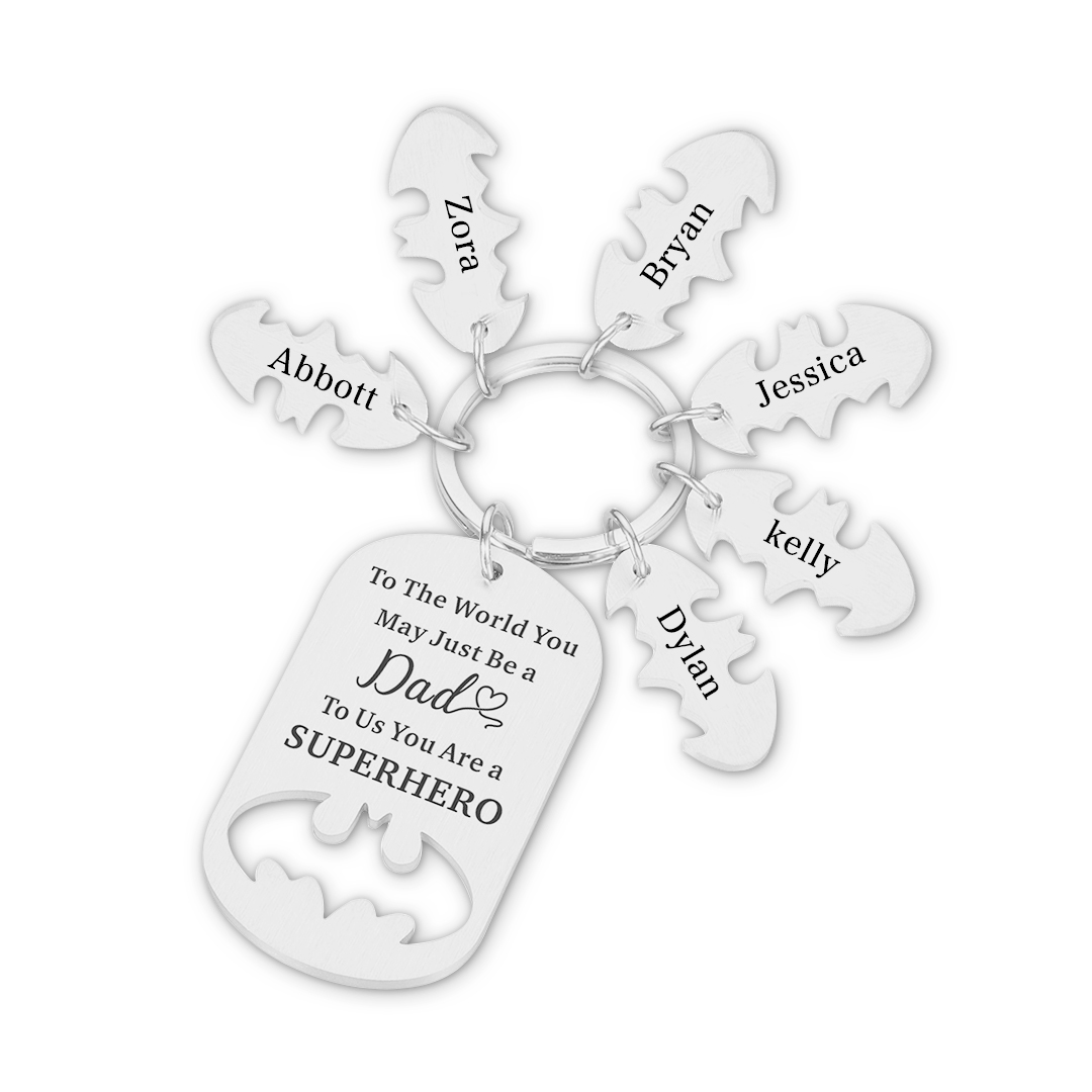 Father Keychain You Are A Superhero Personalized 6 Names Bat Keychain Father's Day Gifts for Batman Dad