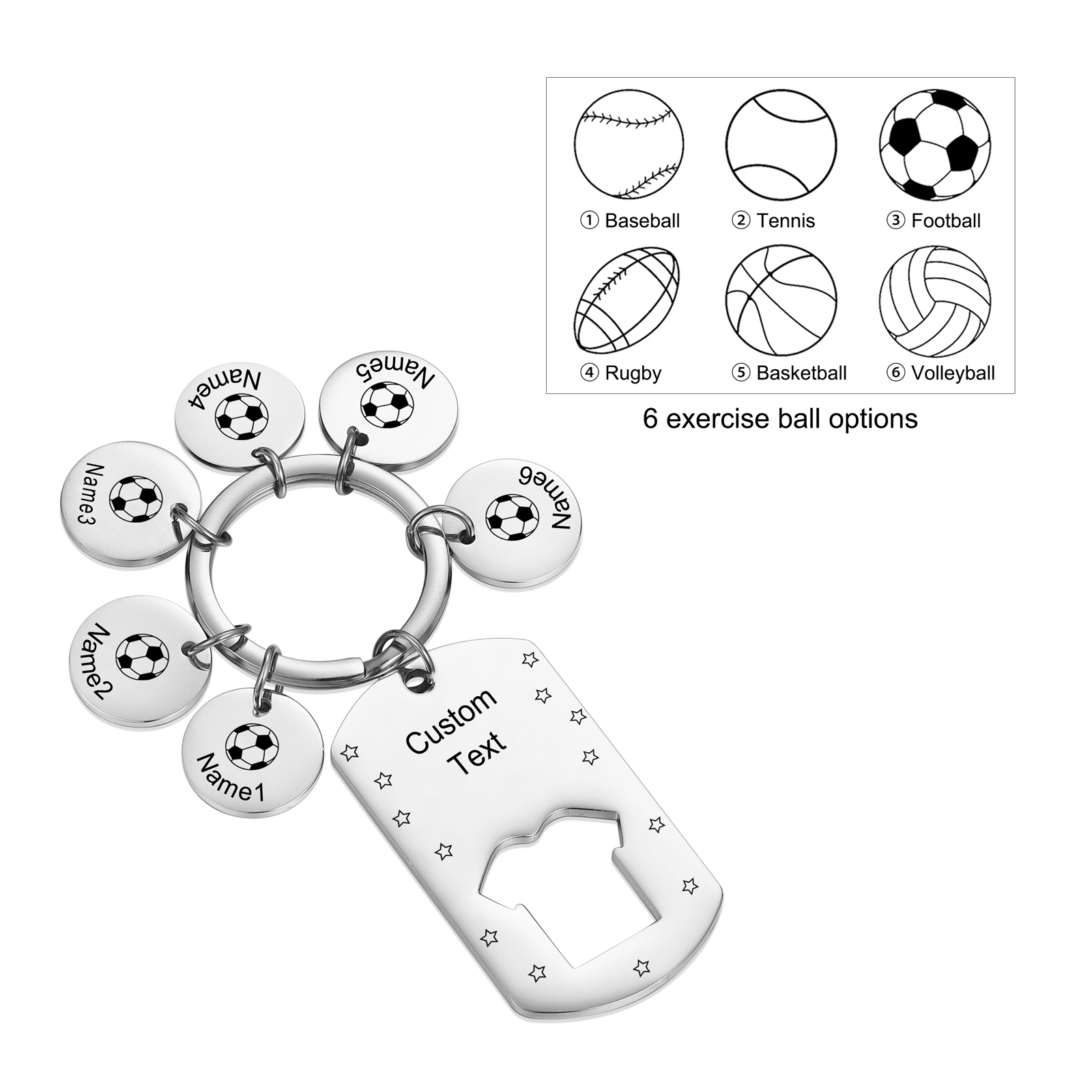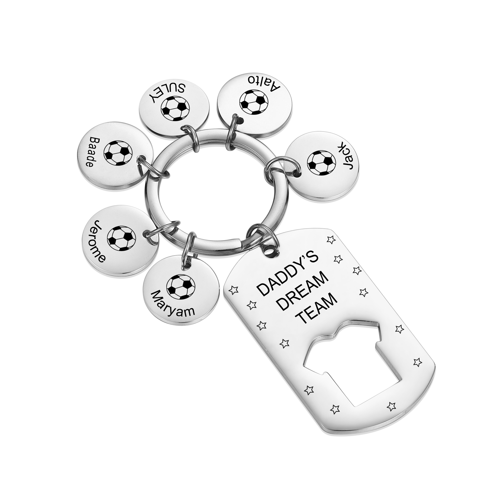 Personalized 6 Names Keychain Soccer Fan Father Gifts