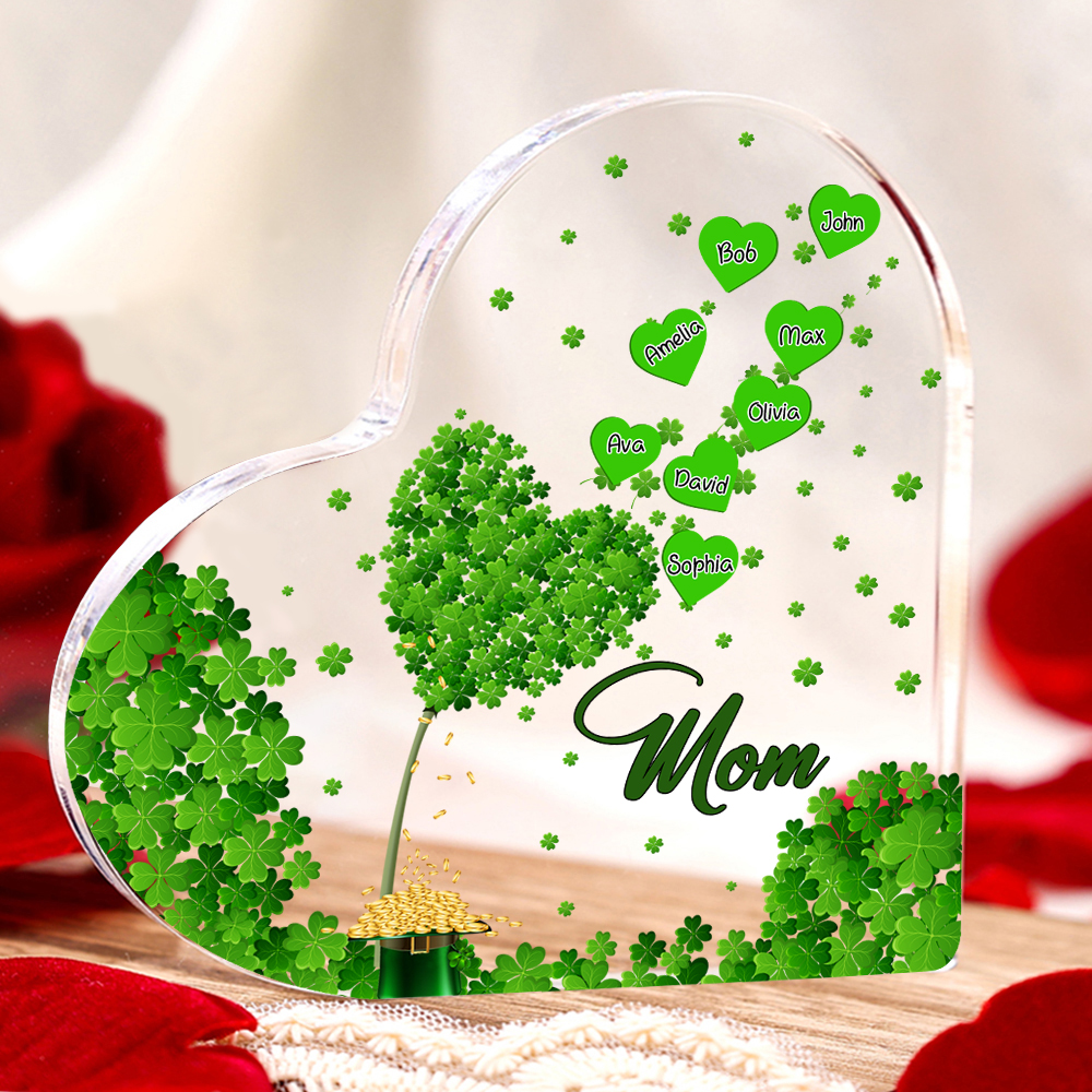 8 Names - Personalized Acrylic Heart Keepsake Custom Text Four-Leaf Clover Ornament Gift for Mother/Grandma