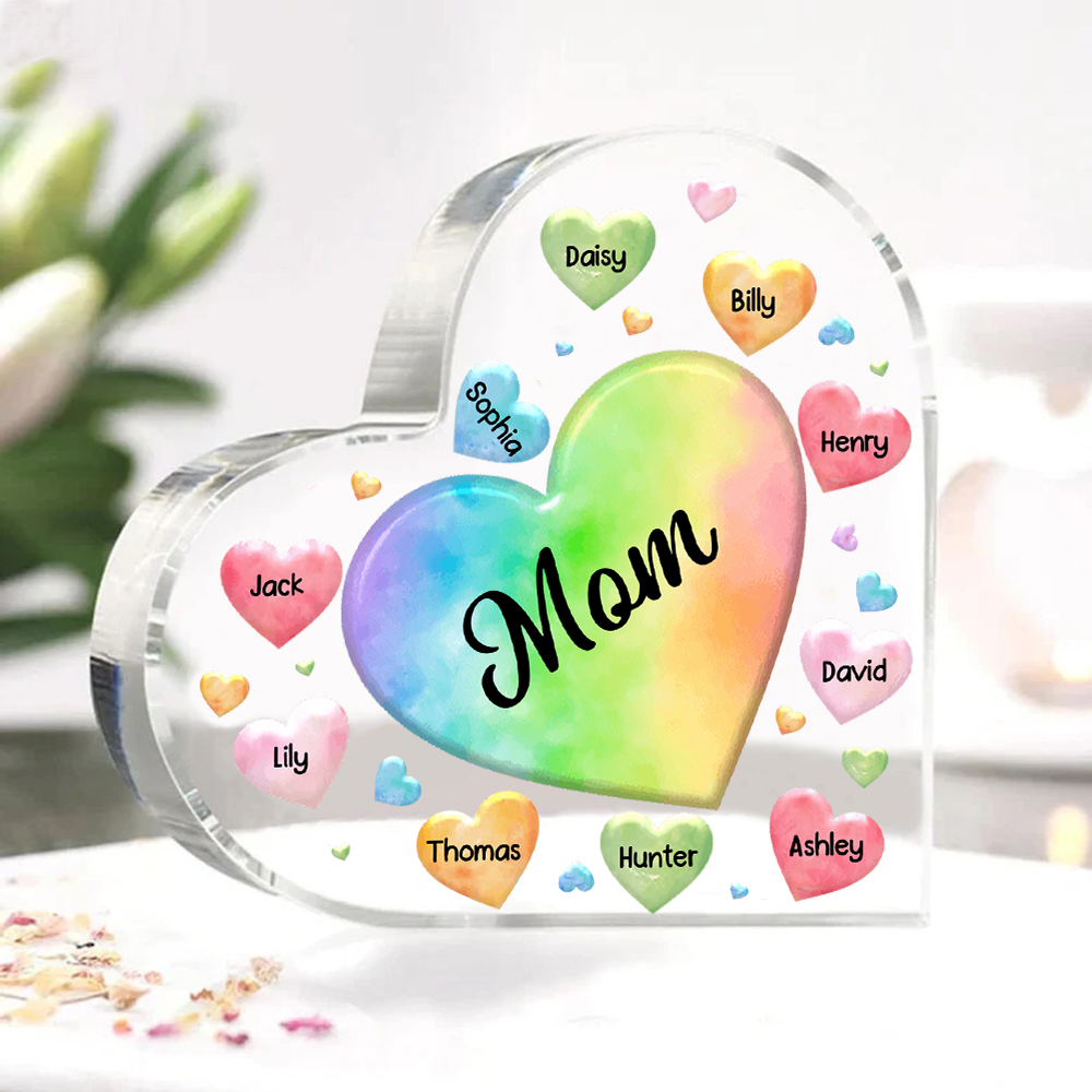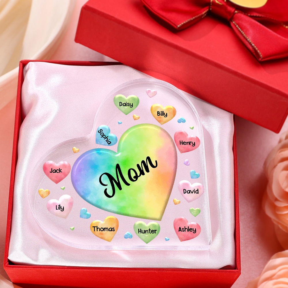10 Names - Personalized Acrylic Heart Keepsake Custom Text Colorful Hearts Ornament Gift for Mother/Grandma