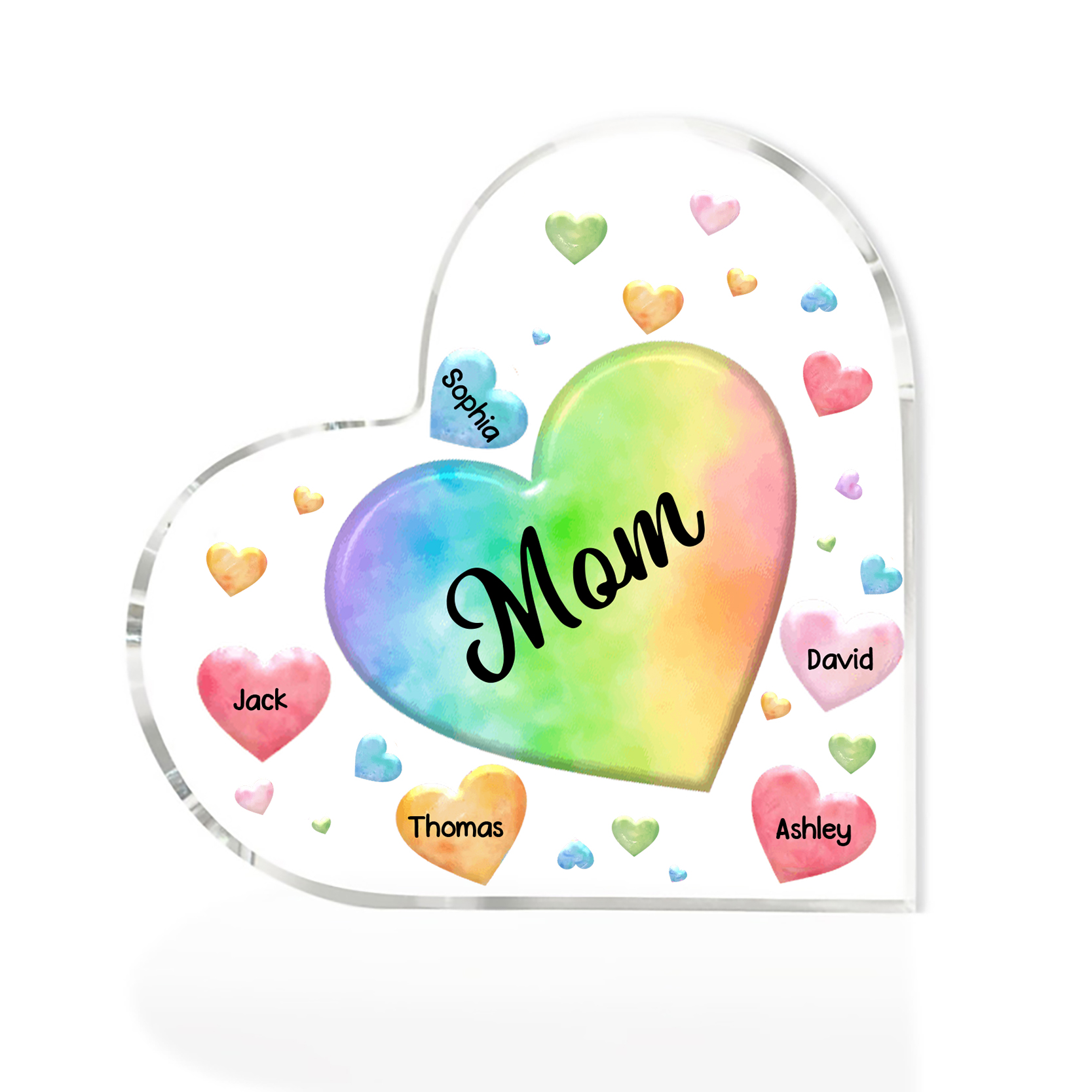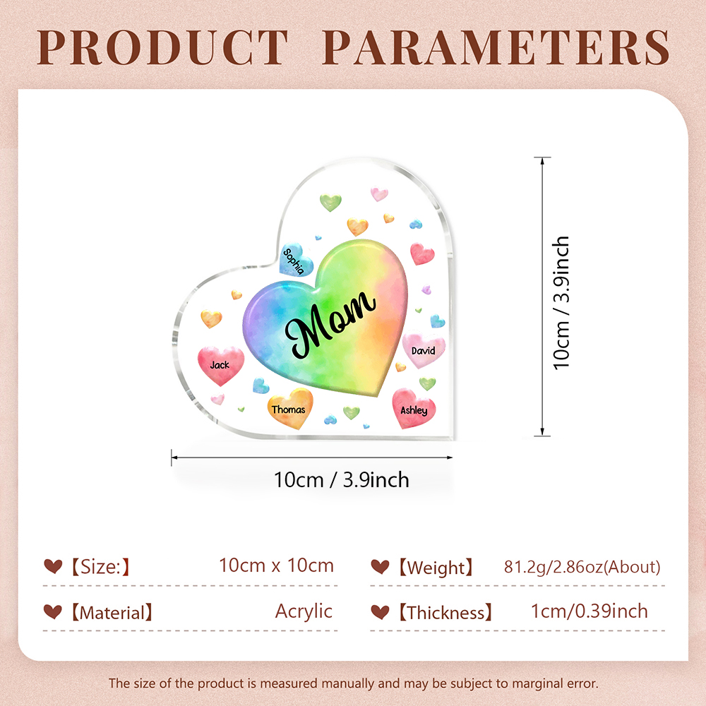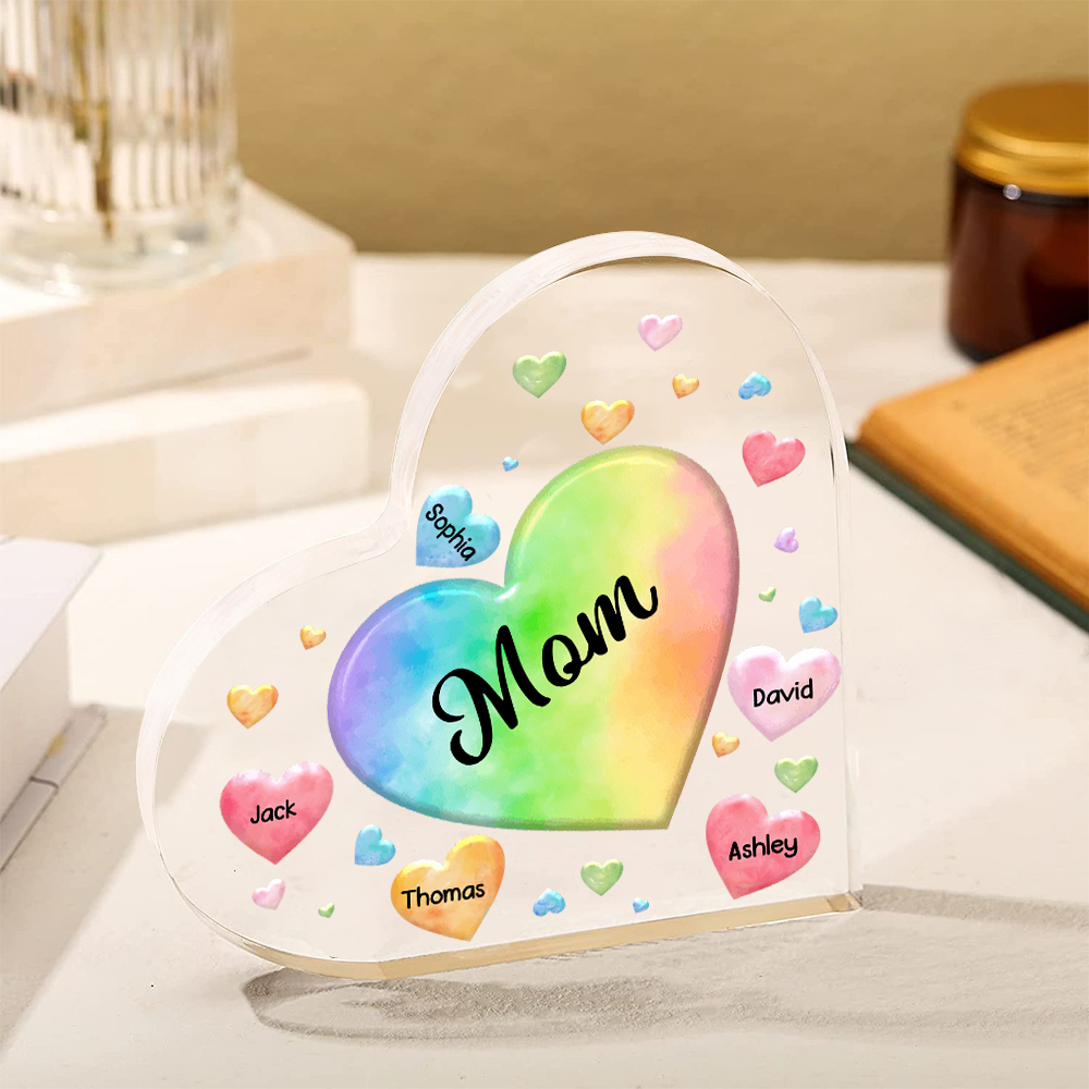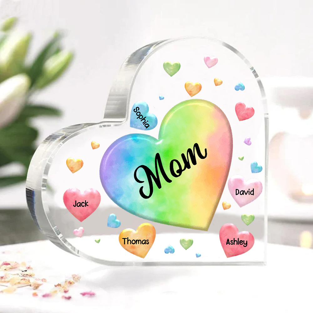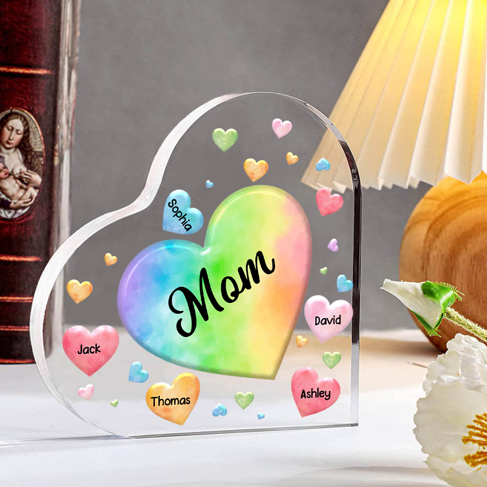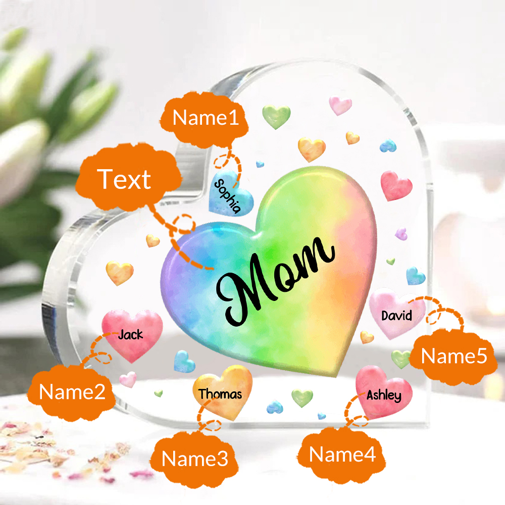5 Names - Personalized Acrylic Heart Keepsake Custom Text Colorful Hearts Ornament Gift for Mother/Grandma