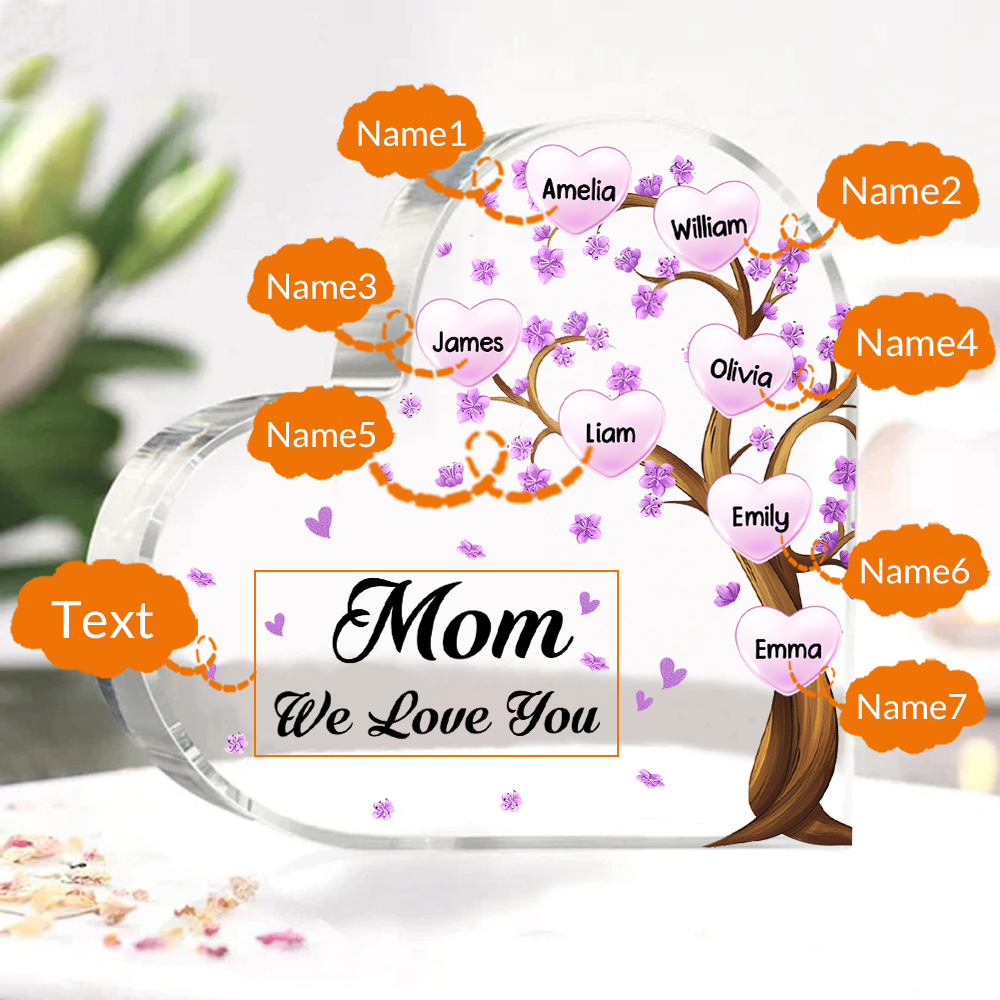 7 Names - Personalized Acrylic Heart Keepsake Custom Text Purple Flowers Tree Ornaments Gifts for Grandma/Mother