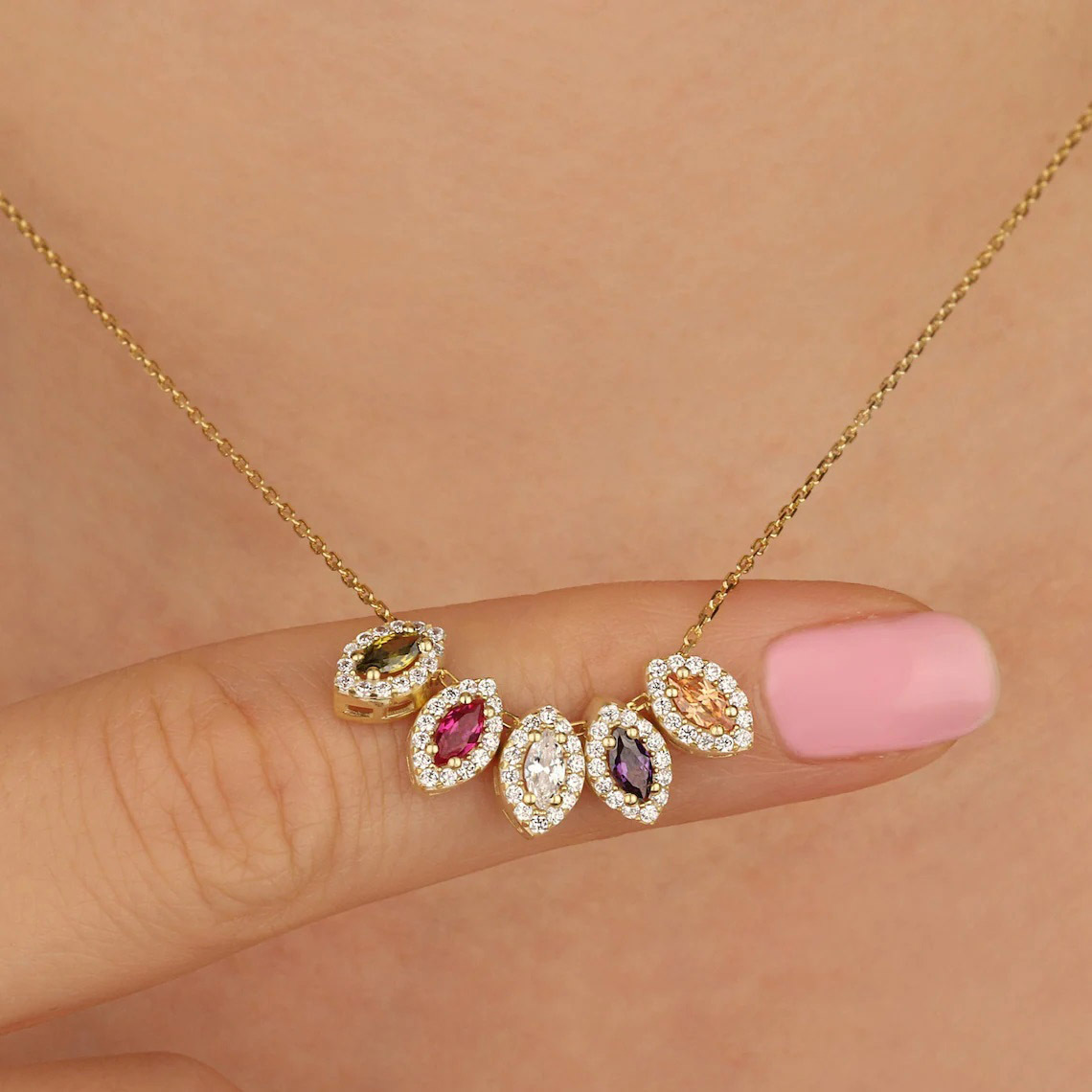 Honor your mother with this stunning birthstone necklace! Symbolize the inseparable bond between mom and kids with this piece by adding children's birthstones. Customize one with your family birthstones, it will make a meaningful gift for a mom to cherish forever!