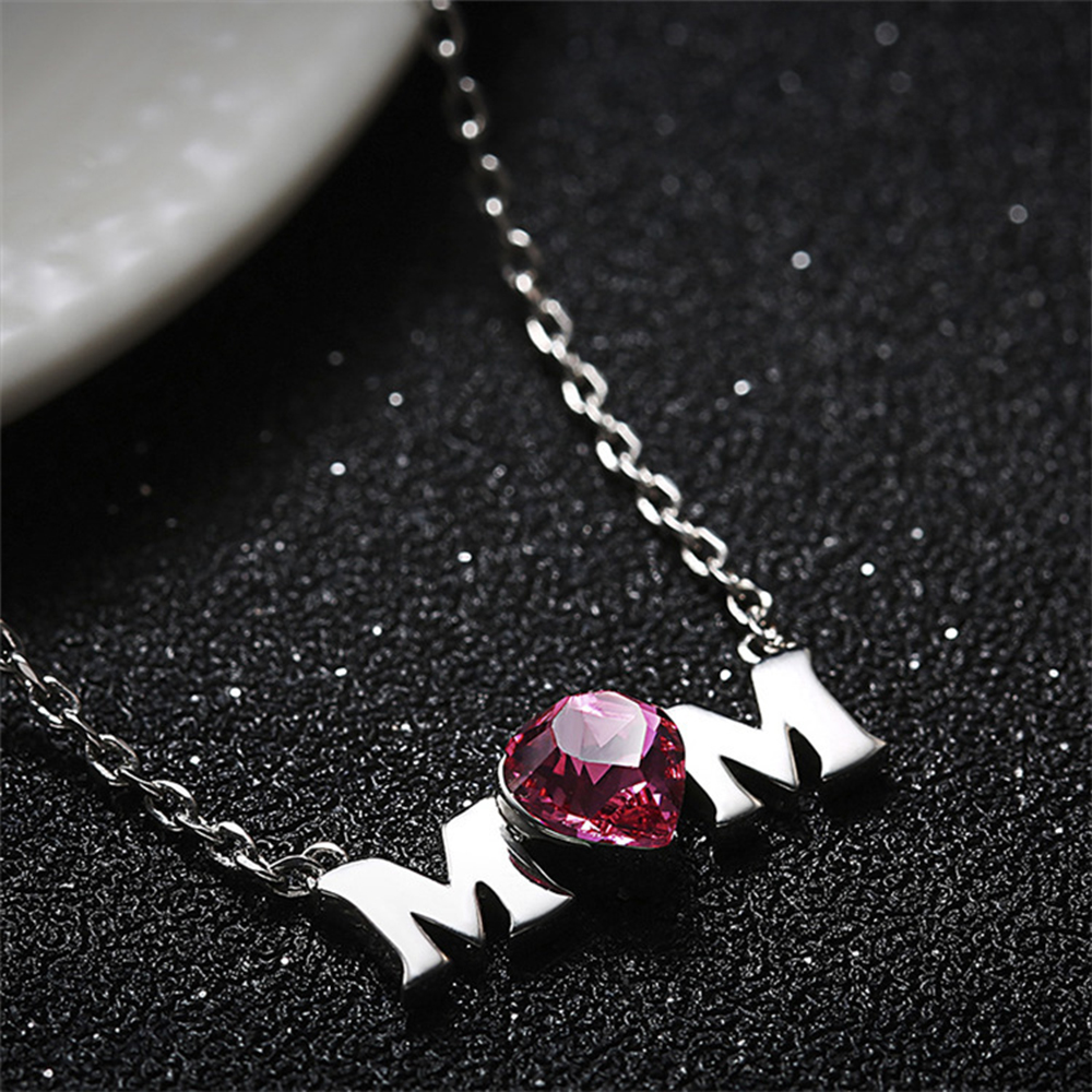 Heart Zircon Necklace with MOM Letter Gifts for Mother