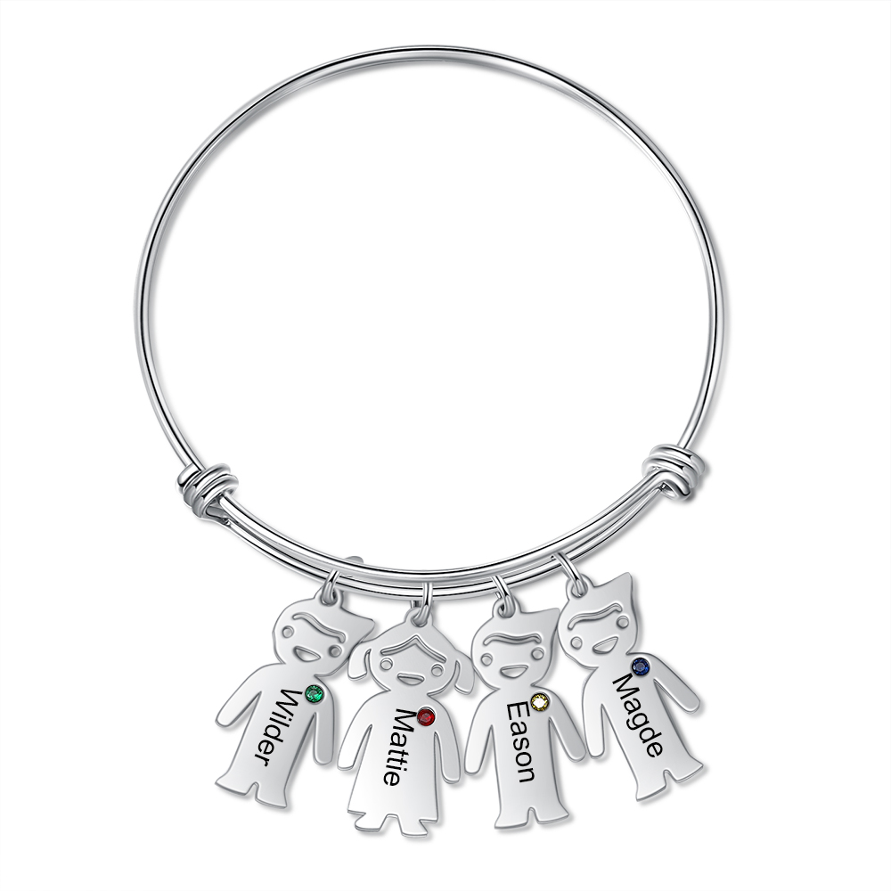 Kid Charm Bangle Bracelet with 4 Birthstones Gift for Mother