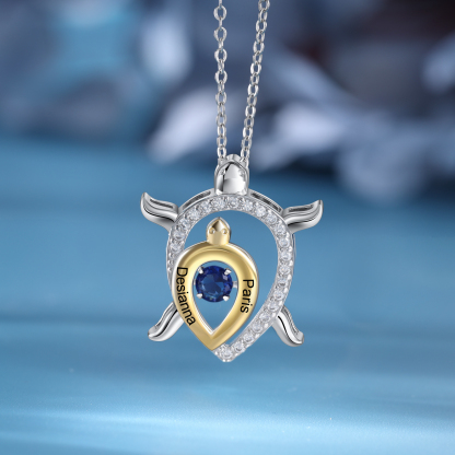 Mother and Child Turtle Necklace Personalized Name & Birthstone Necklace