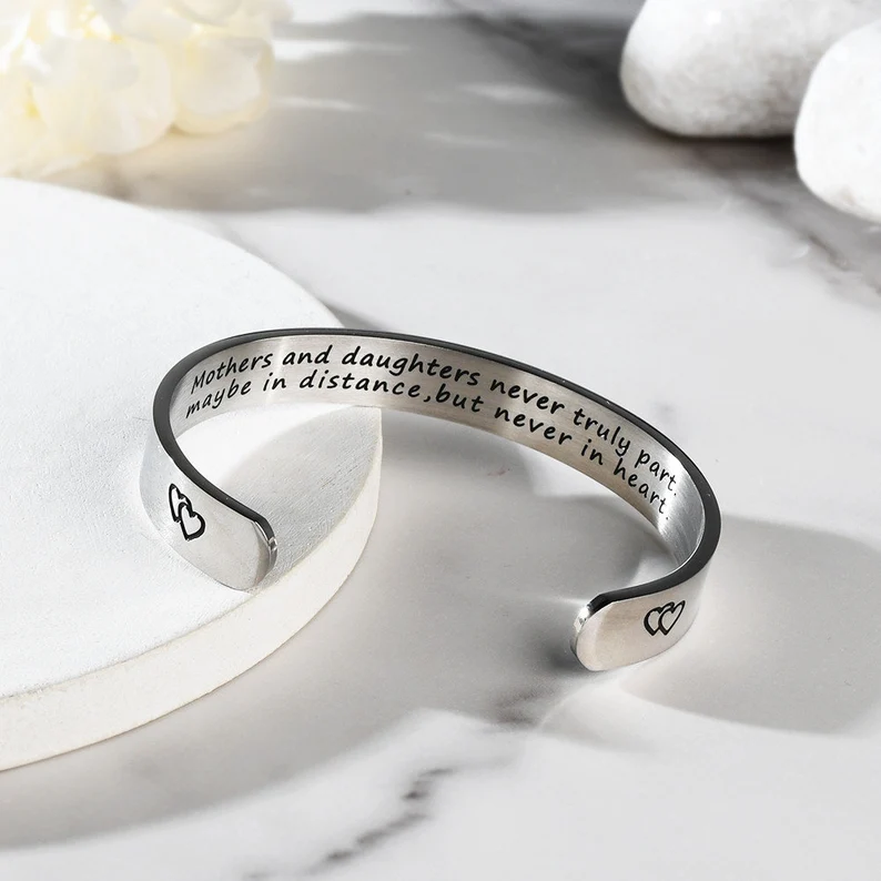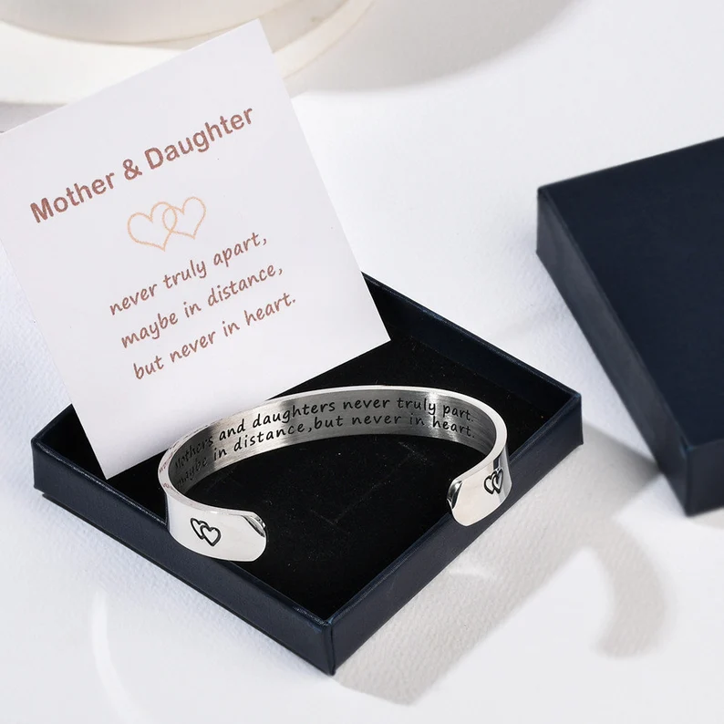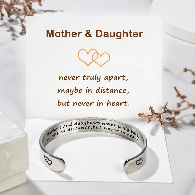 Mother and Daughter Cuff Bangle Bracelet "Never Truly Apart"
