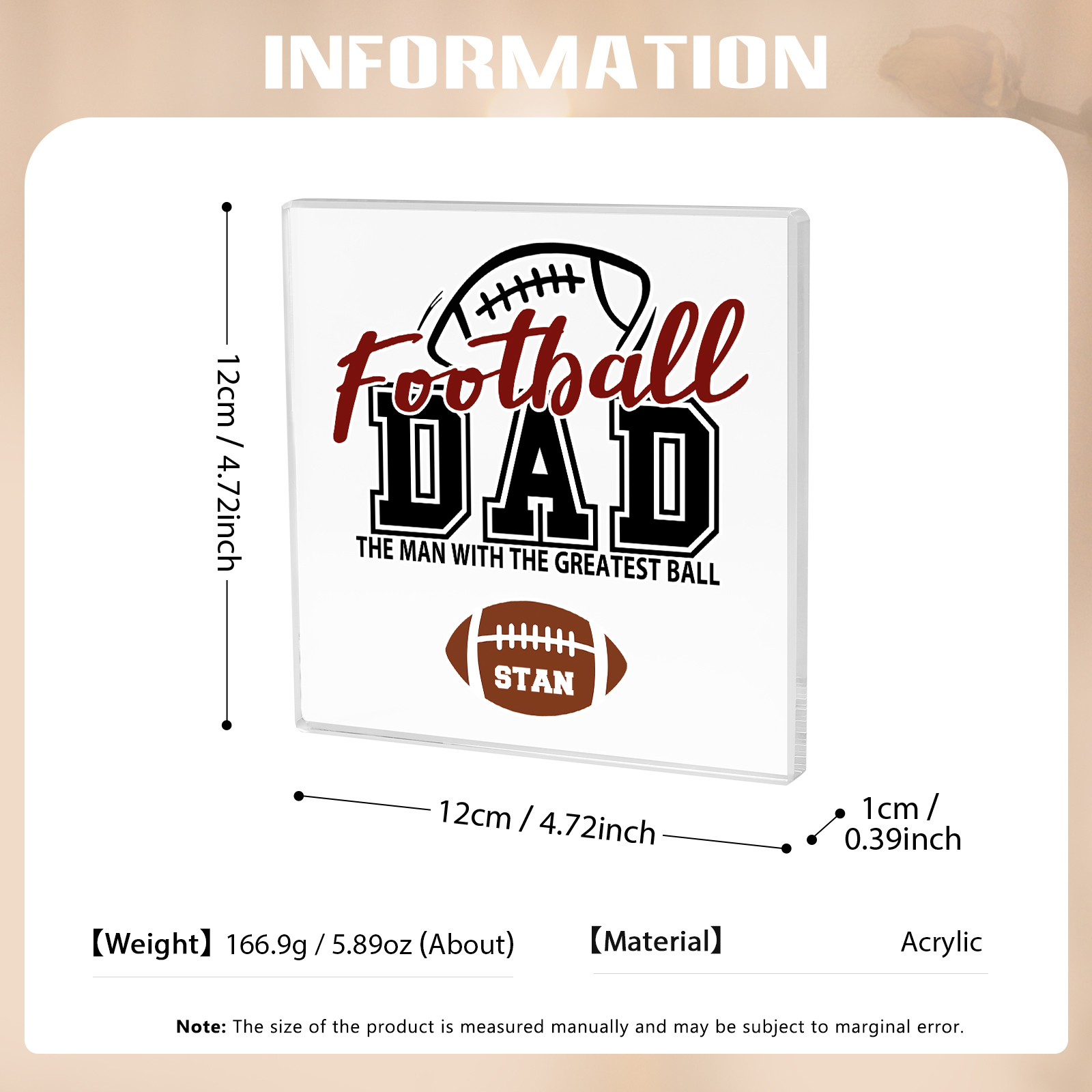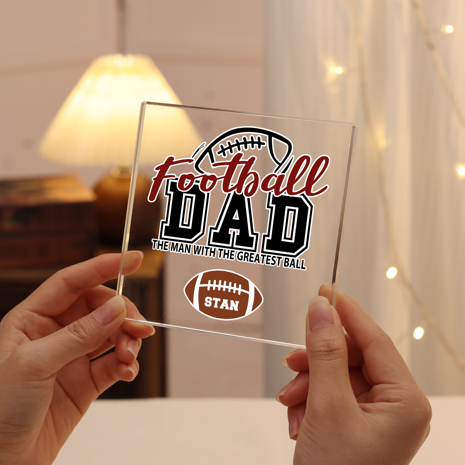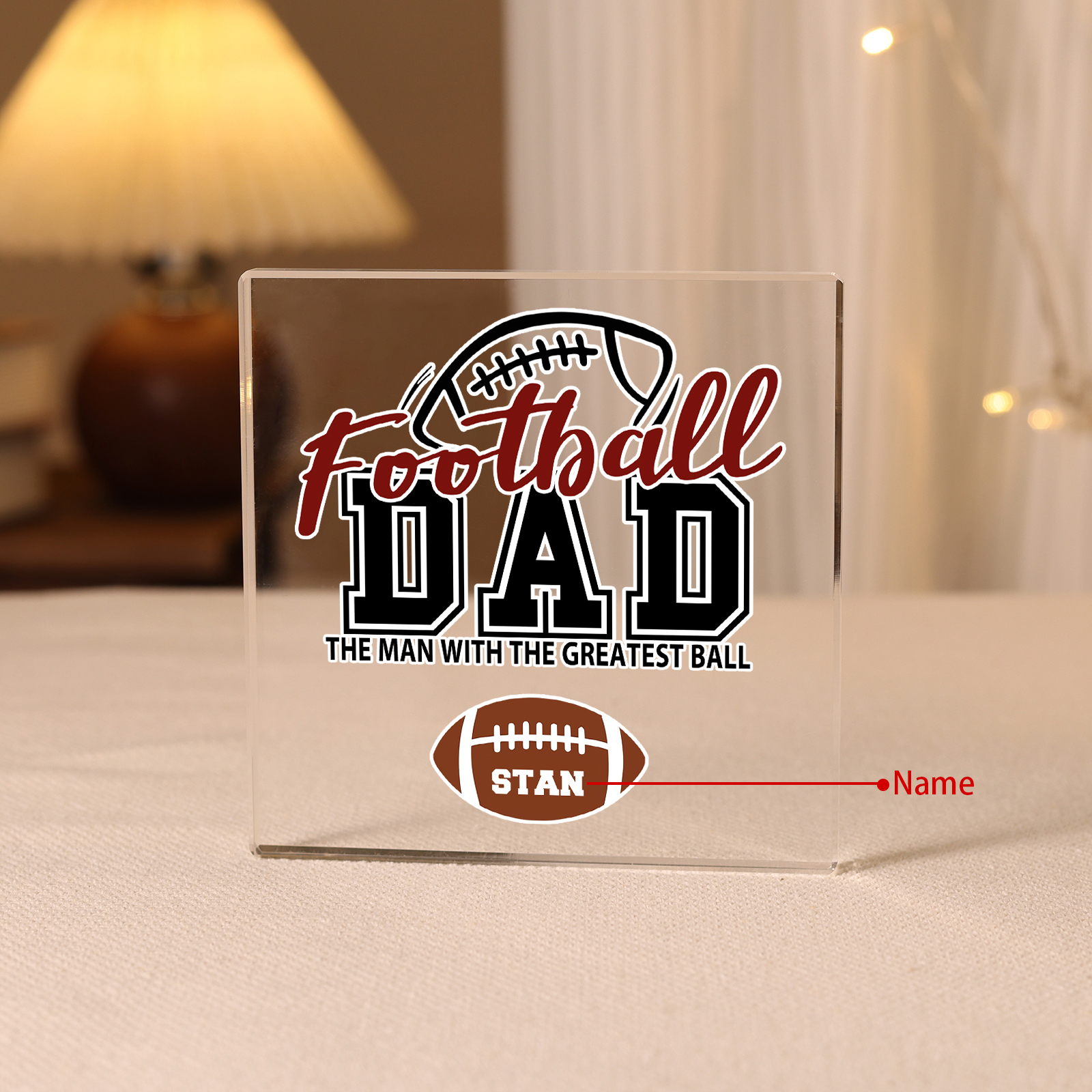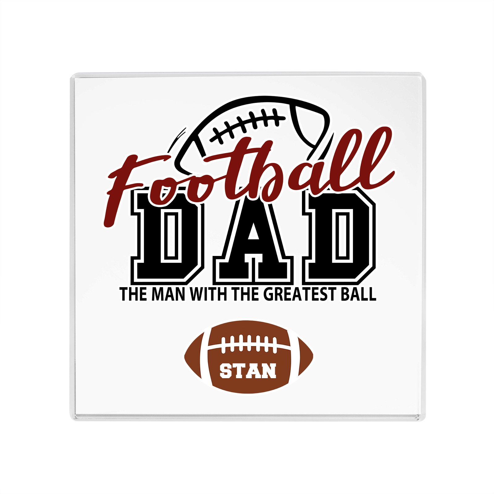 Personalized 1 Name Acrylic Square Keepsake Football Dad Rectangle Plaque Father's Day Gifts - The Man With The Greatest Ball