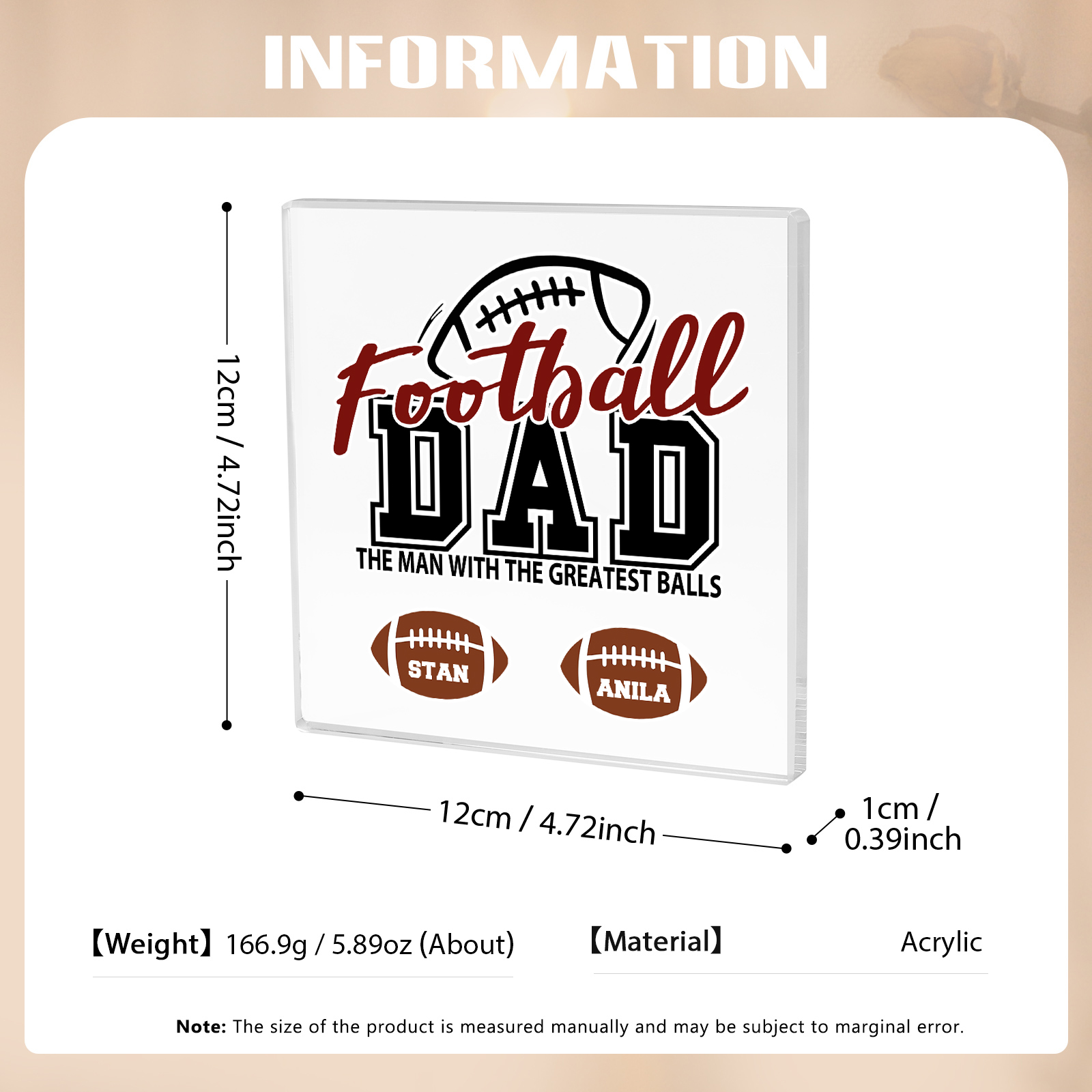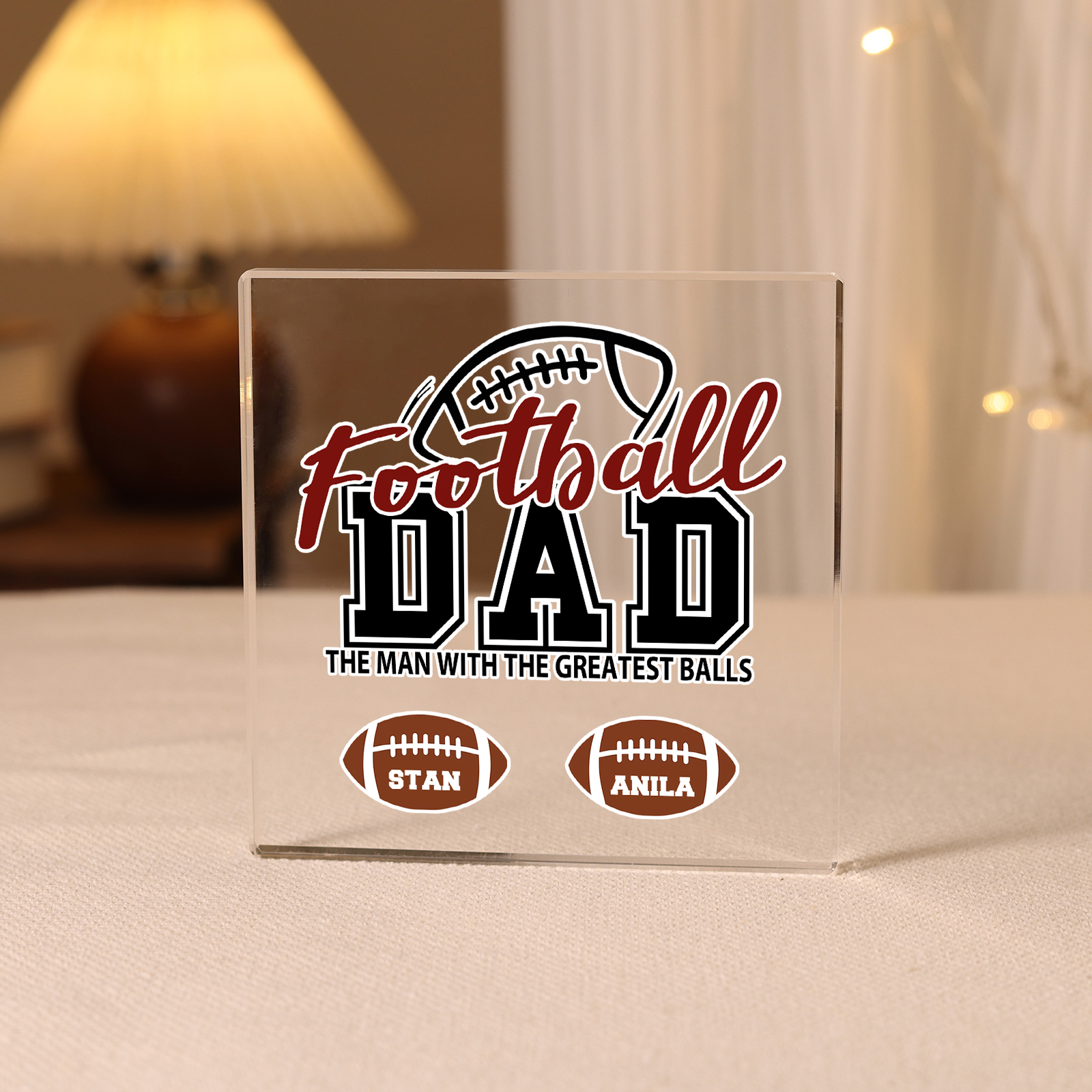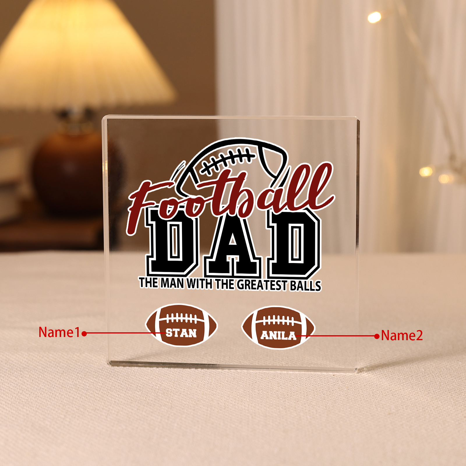 Personalized 2 Names Acrylic Square Keepsake Football Dad Rectangle Plaque Father's Day Gifts - The Man With The Greatest Ball