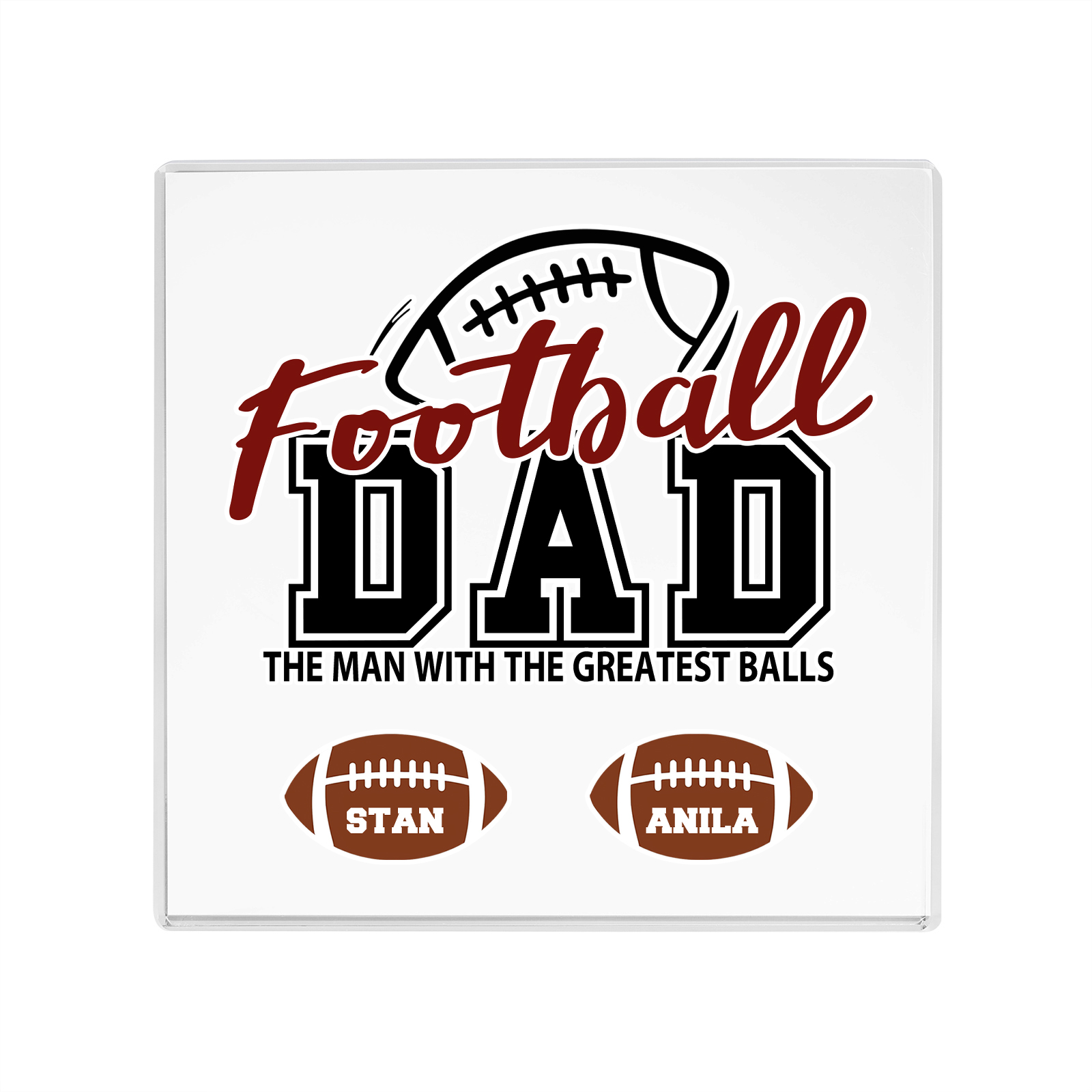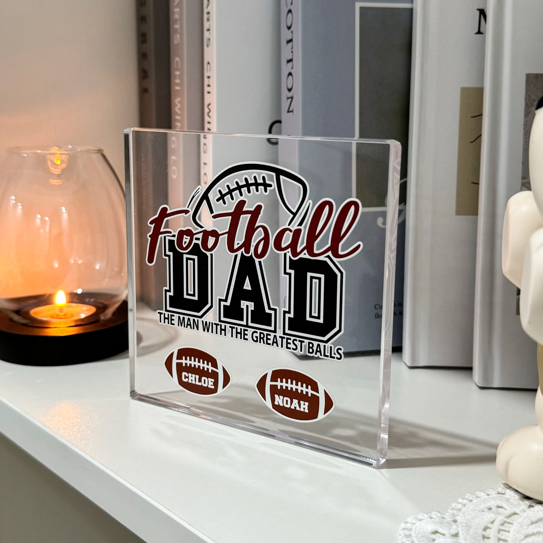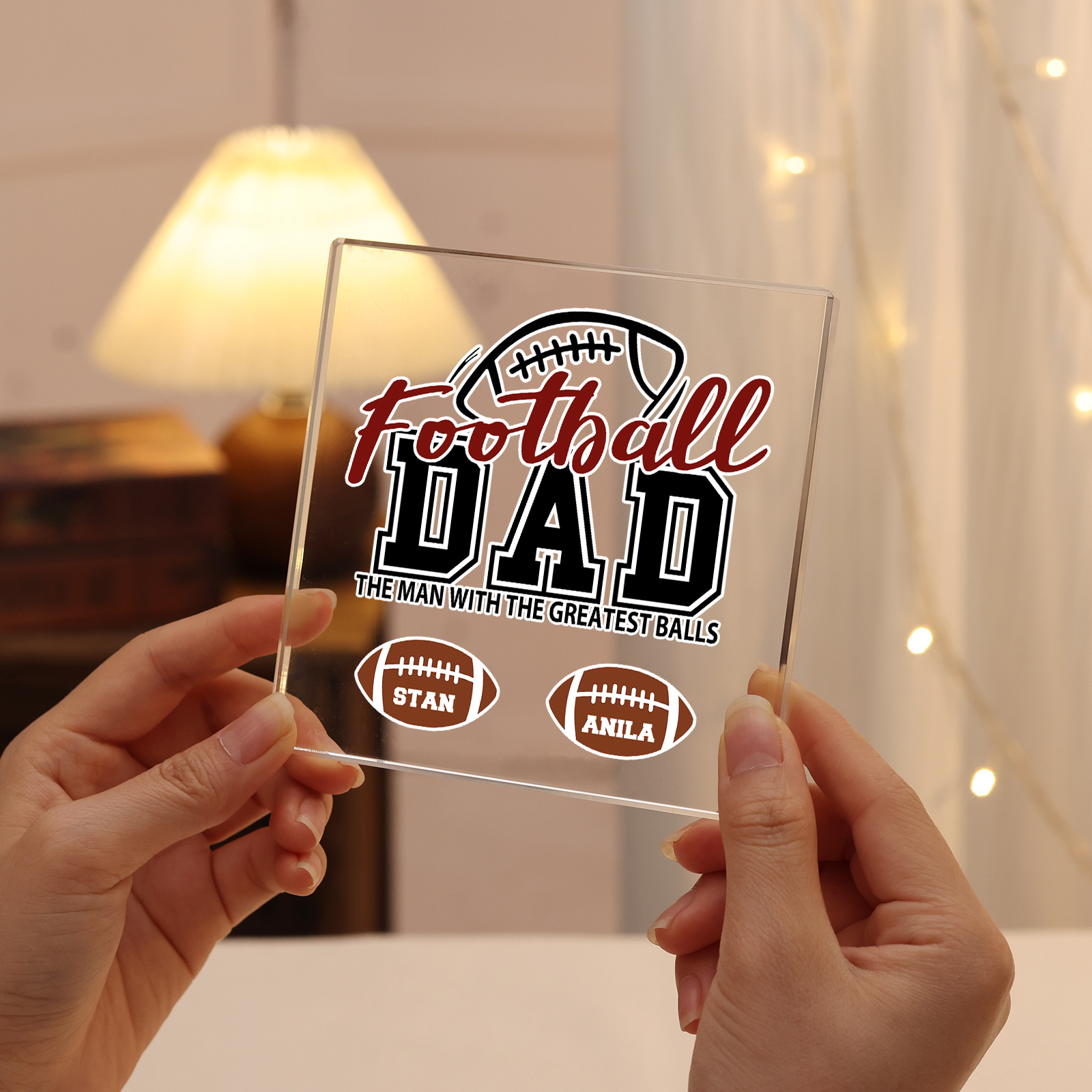 Personalized 2 Names Acrylic Square Keepsake Football Dad Rectangle Plaque Father's Day Gifts - The Man With The Greatest Ball
