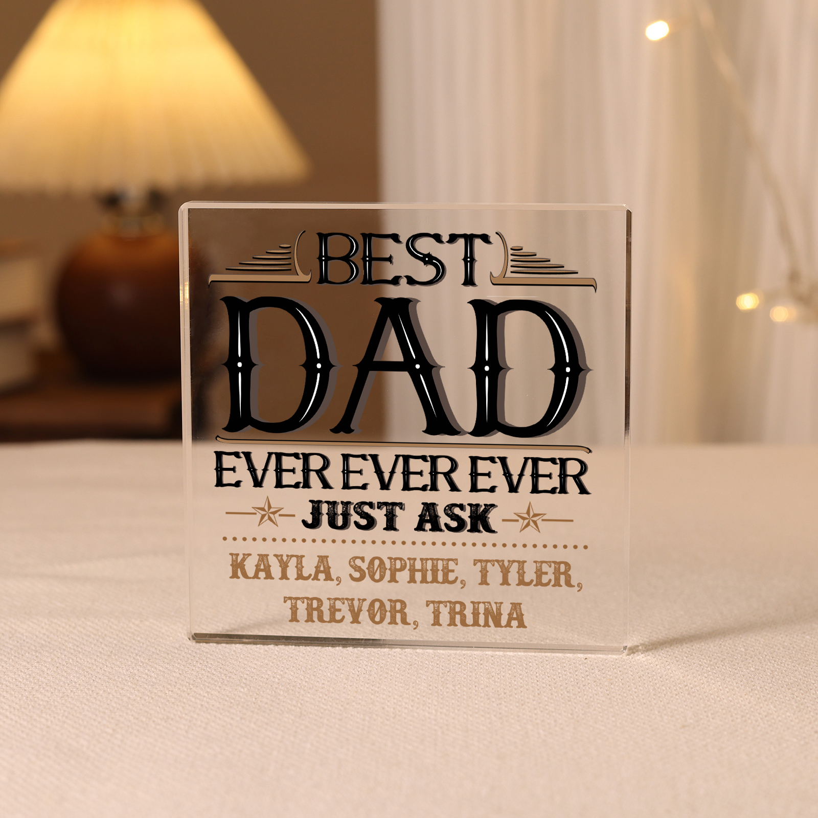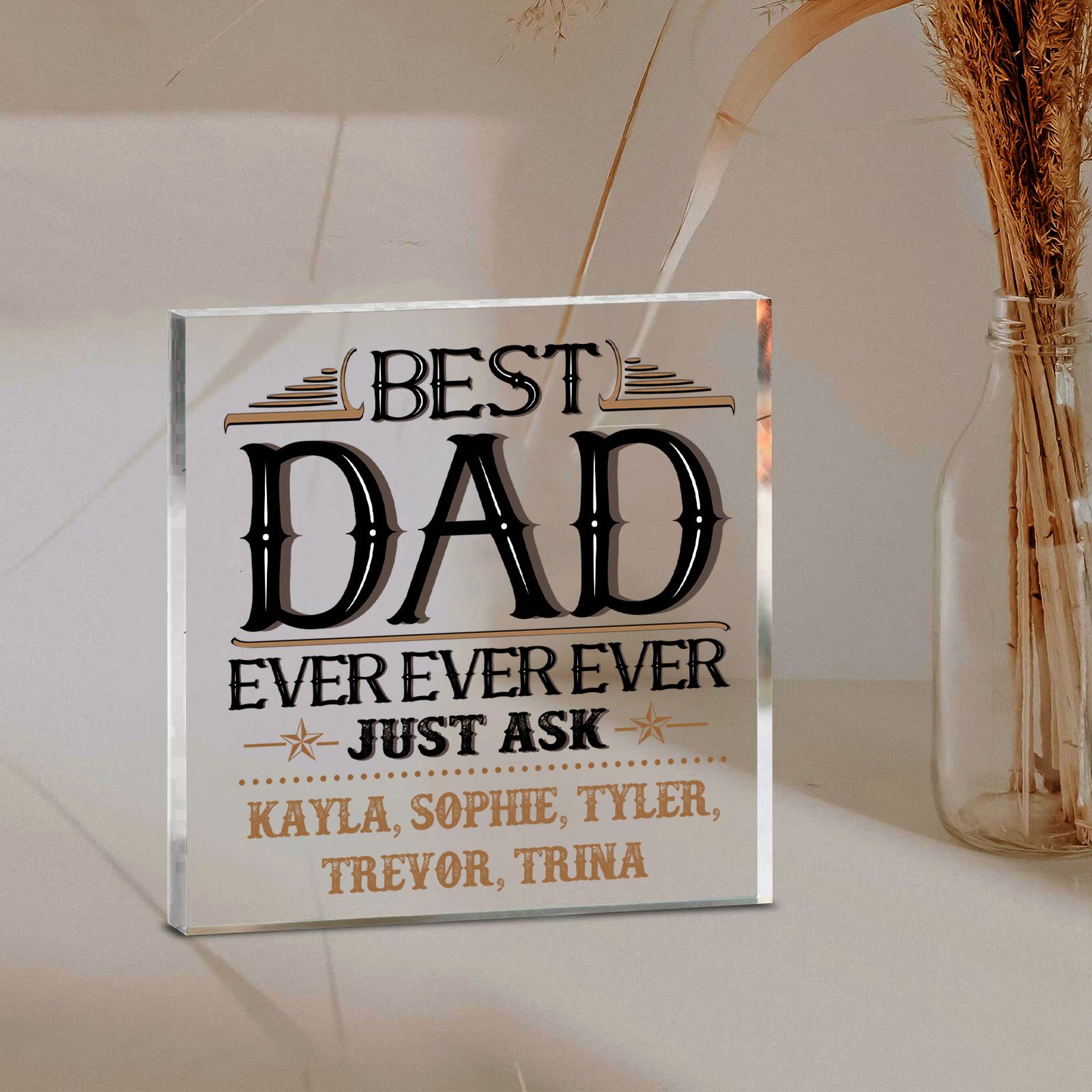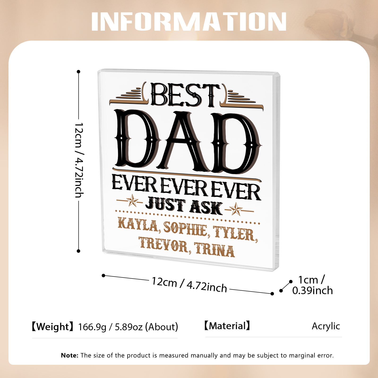 Personalized Acrylic Square Keepsake Custom 1 Text Rectangle Plaque Home Decor Father's Day Gift - Best Dad Ever
