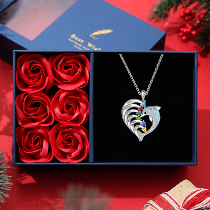Personalized Heart Dolphin Necklace Custom 6 Birthstones Necklace for Her