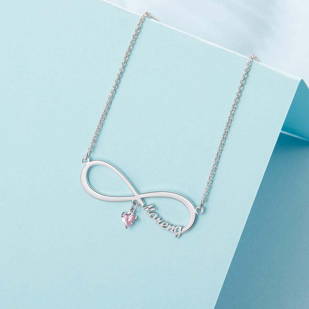 Personalized Infinity Name Necklace with 1 Birthstone Family Necklace